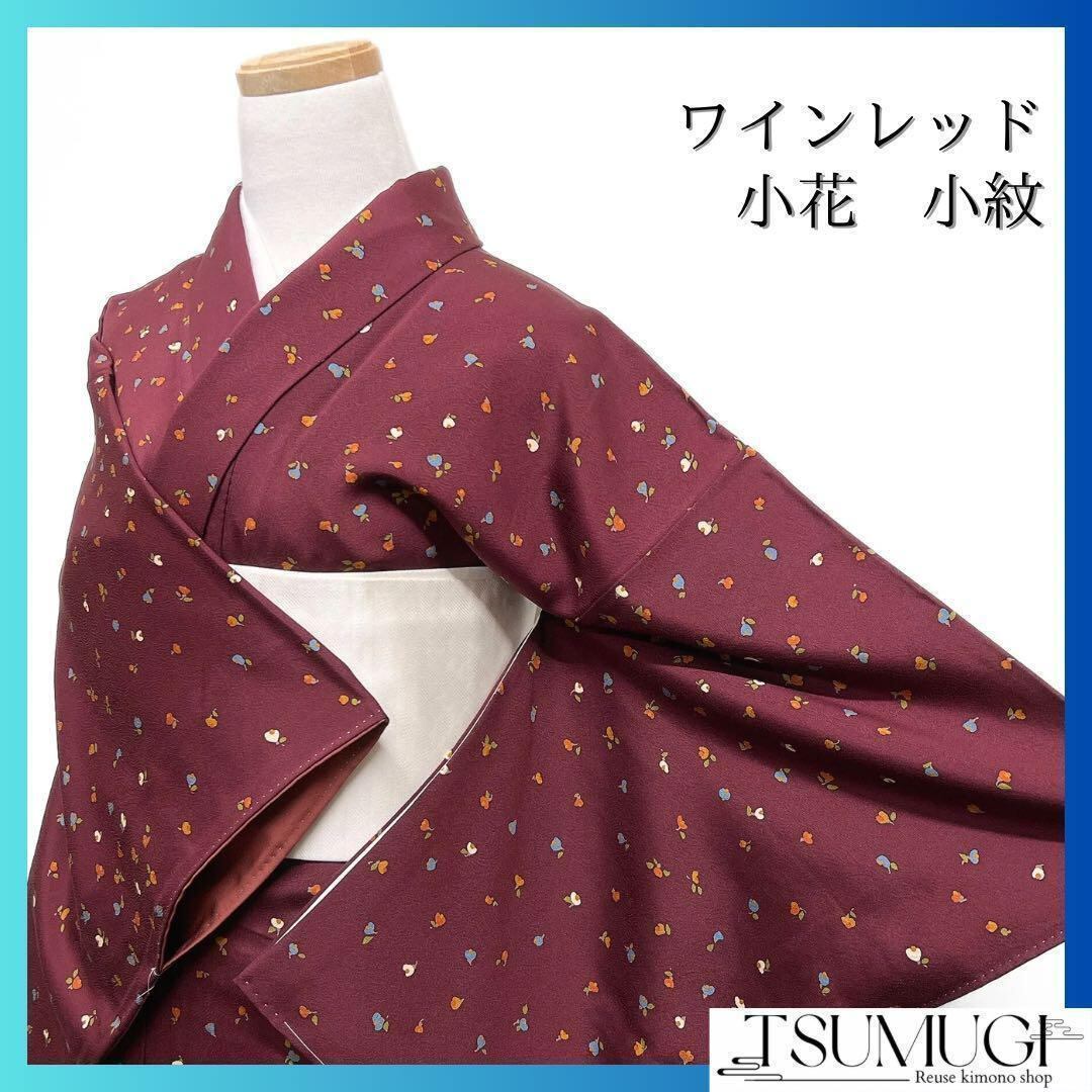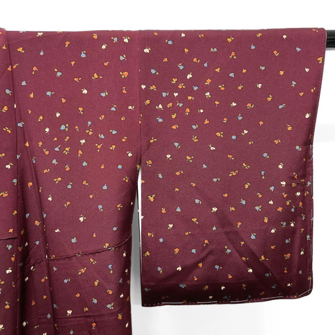 ワインレッド地にカラフルな小花模様がお洒落な一着です。