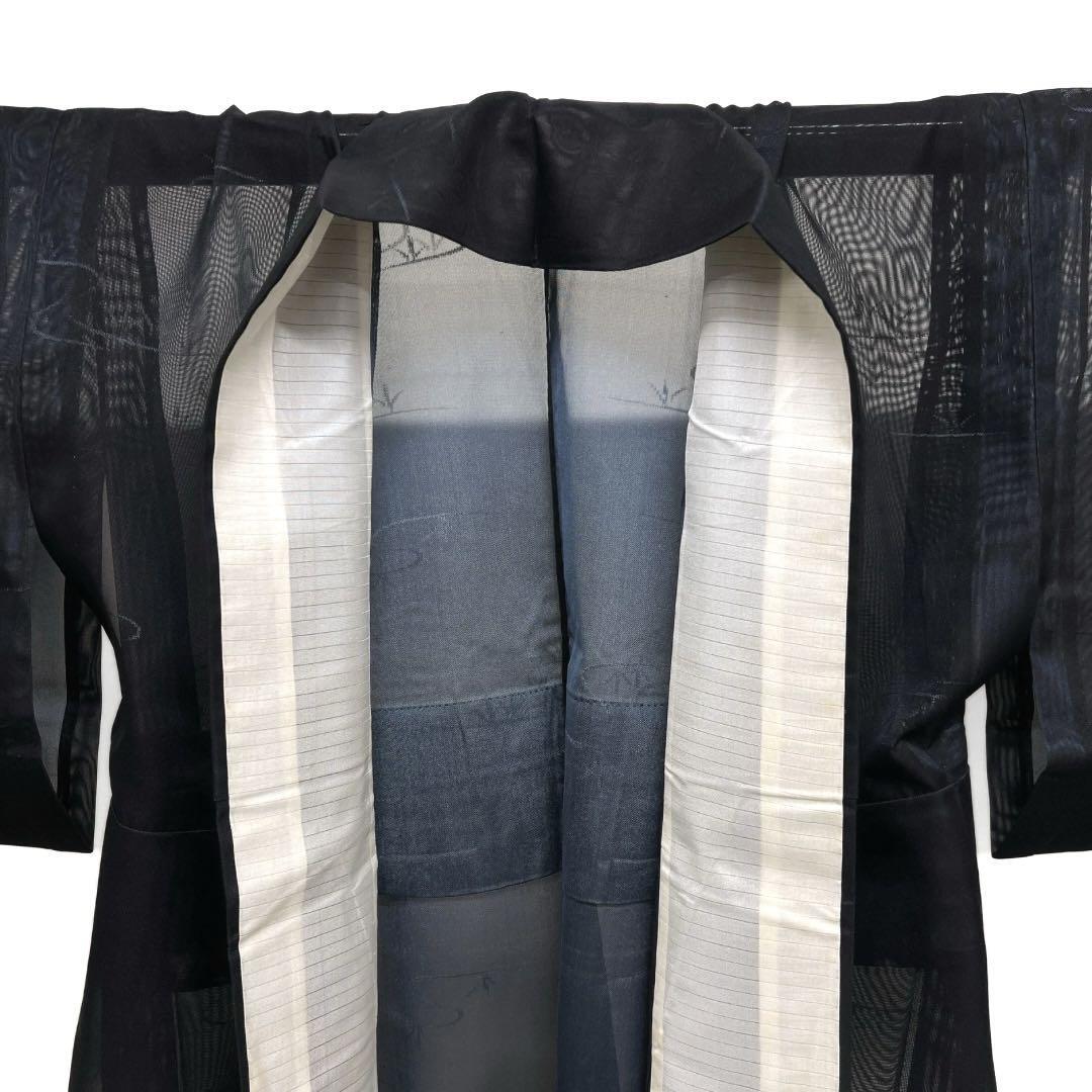 表地の黒地と裏地のくすみブルーの二重紗に流水と葦の文様がお洒落なデザインです。