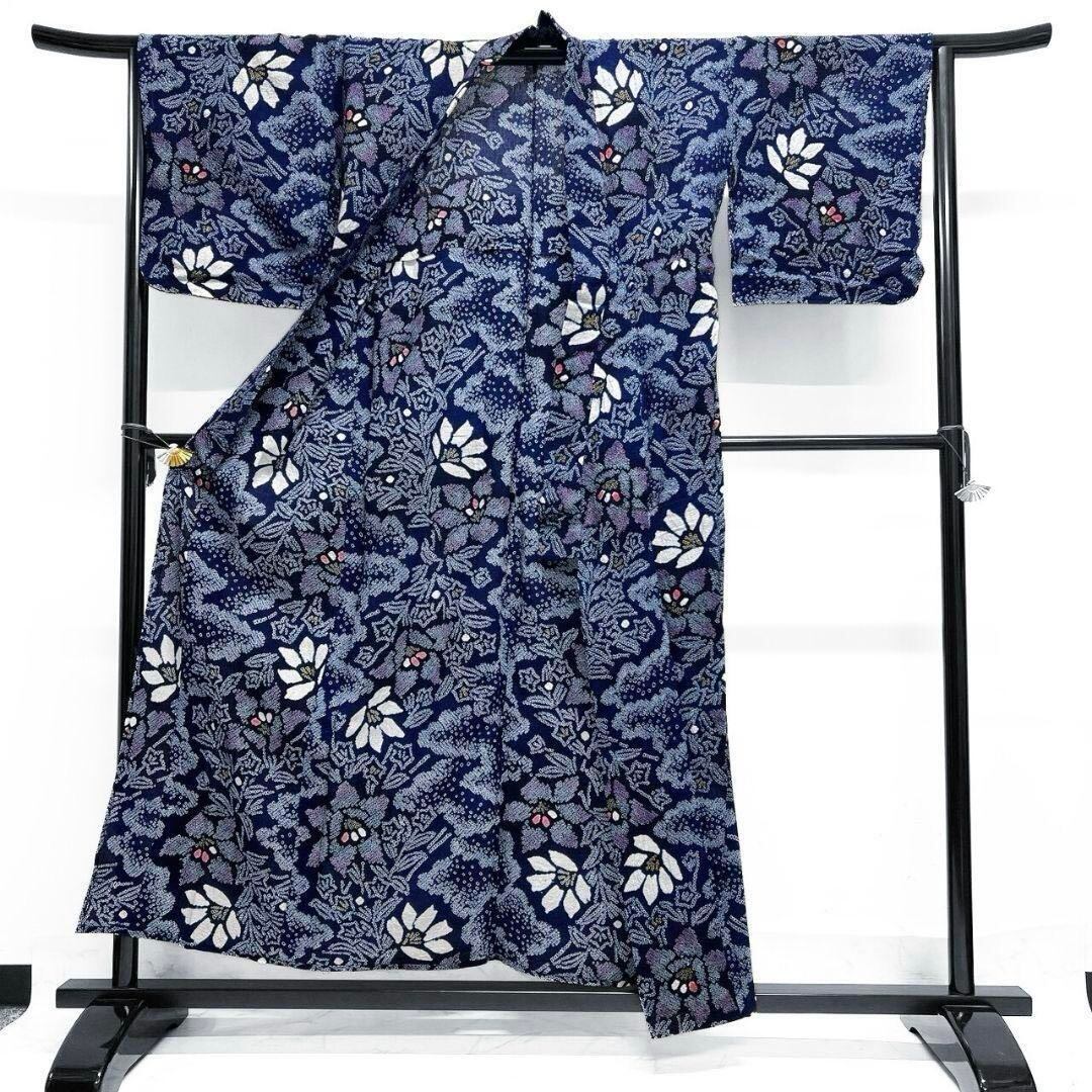 鹿の子の絞りで描かれた華やかな花模様と藍染の有松鳴海絞りの風合いをお楽しみください。