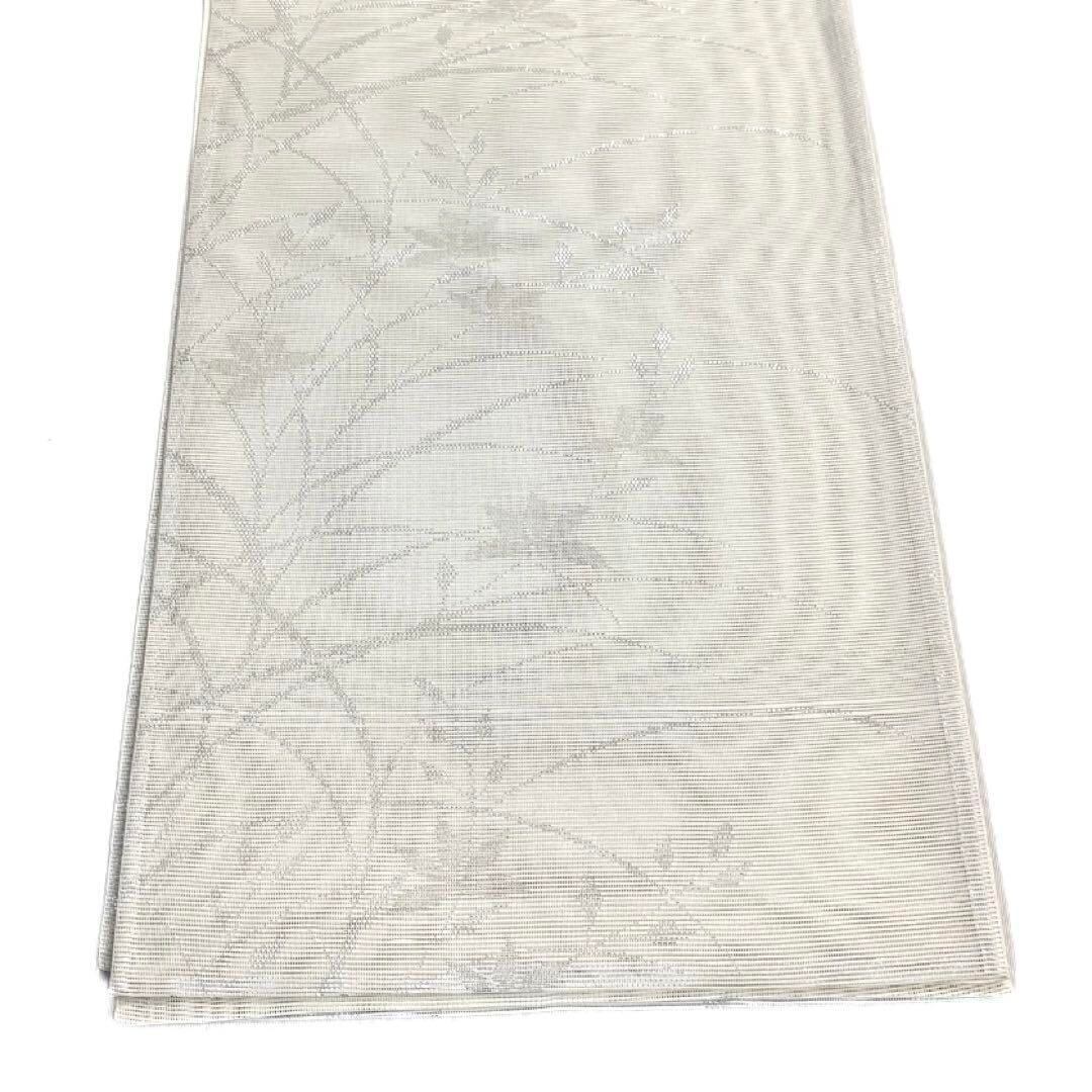 くすみのオフホワイトの地に銀で織られた葉影のようなリーフの文様がお洒落なデザインの一着です。