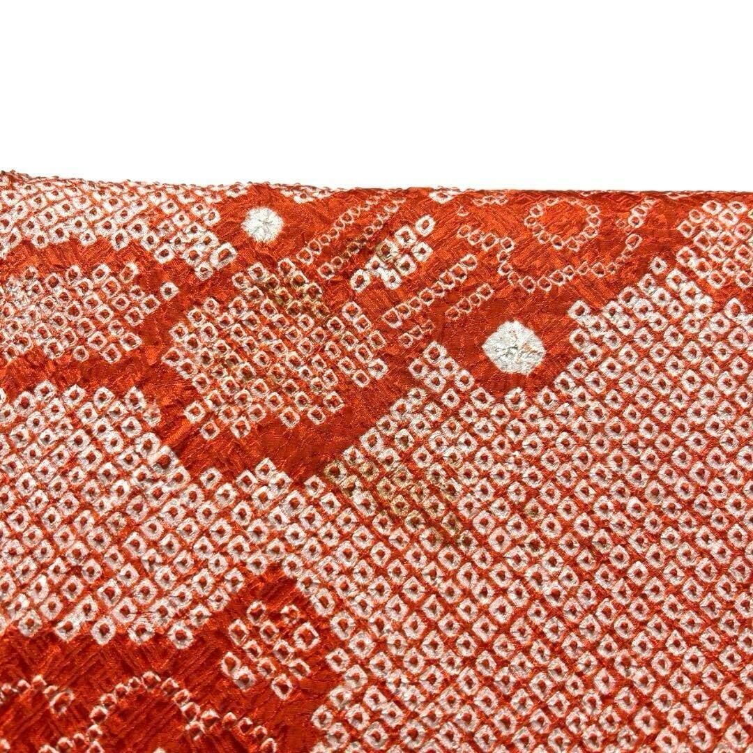 鮮やかなオレンジのお色味に金駒刺繍が華やかなデザインの1着です。
