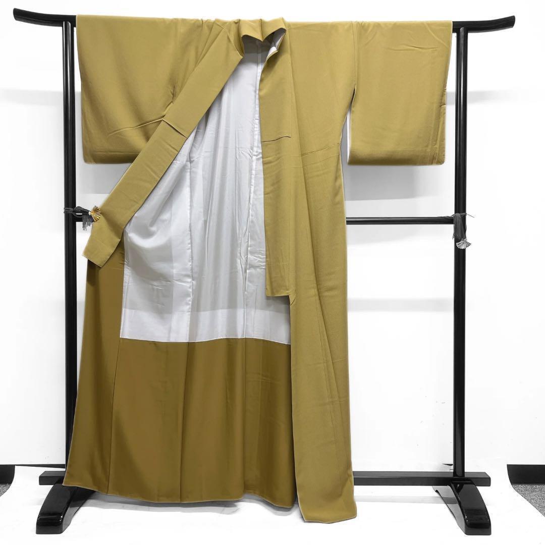 落ち着いたお色味のくすみの黄色地が上品な印象の一着です。
