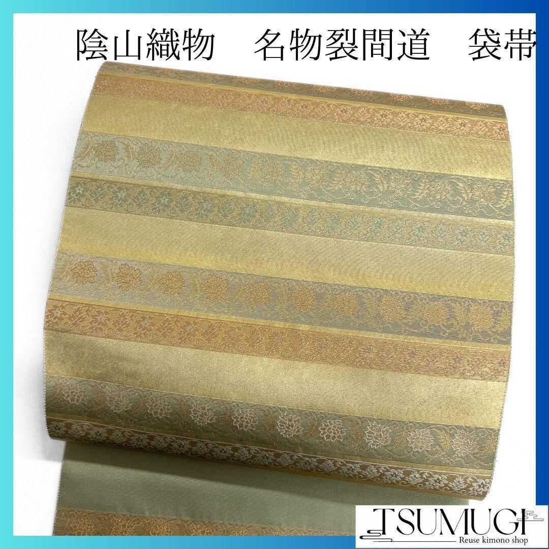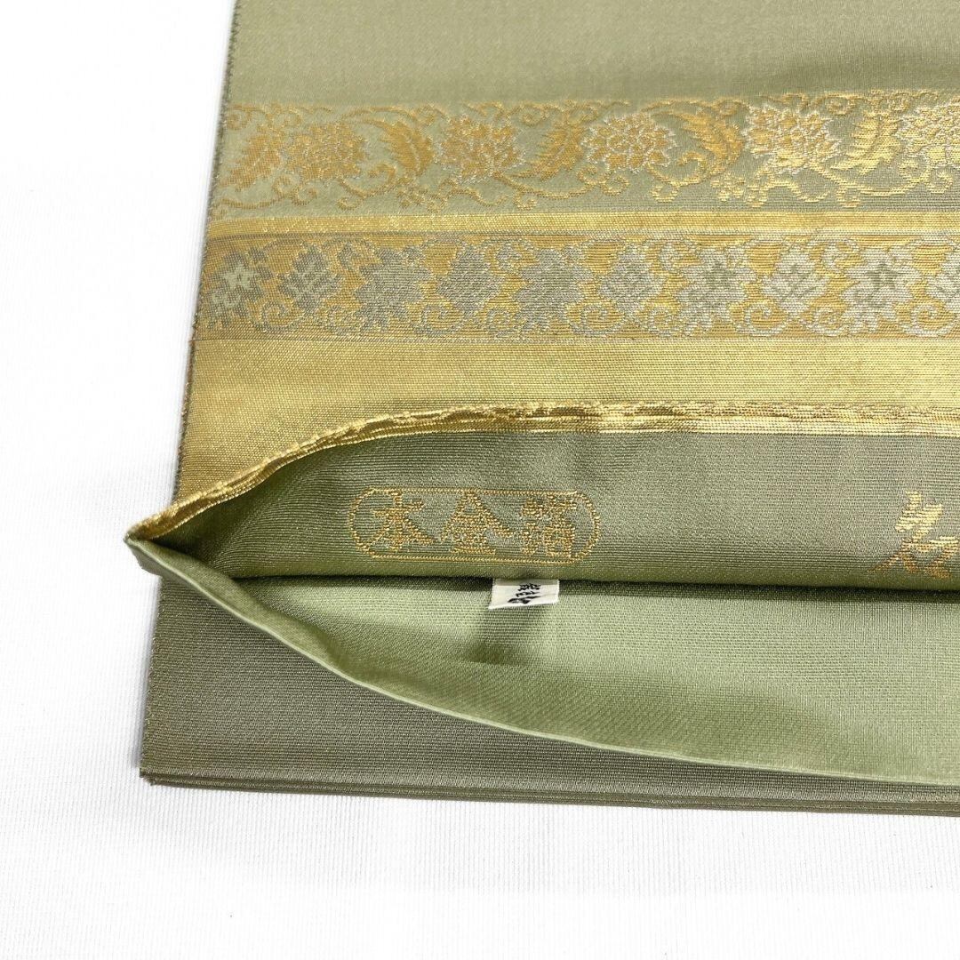 横壇に本金箔を交え織り出された唐花模様が美しい一着です。