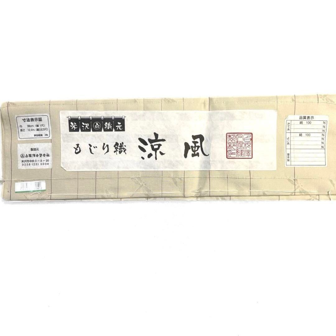 もじり織りの薄いベージュの地に縦縞文様と蜻蛉の文様が紗で織られたお洒落なデザインの軽やかで柔らかな風合いの一着です。