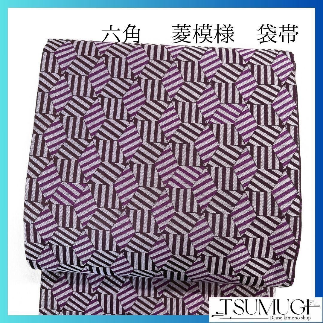 未着用、六角や菱模様、斜線が織り出された袋帯です。