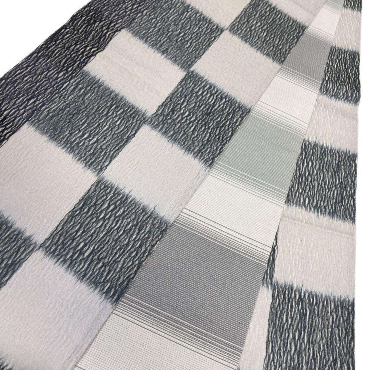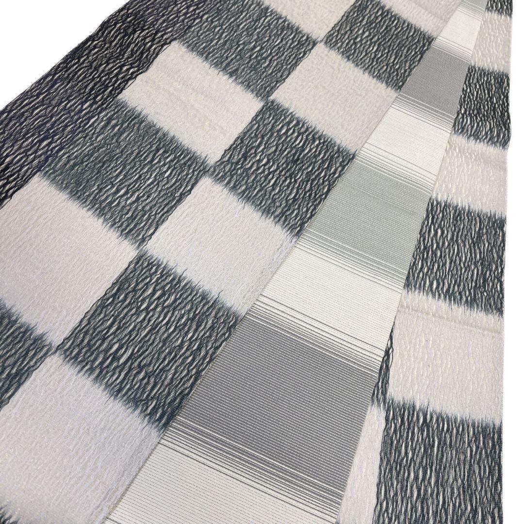 市松模様が西陣織とよろけ織りの美しい織りでデザインされた一着です。