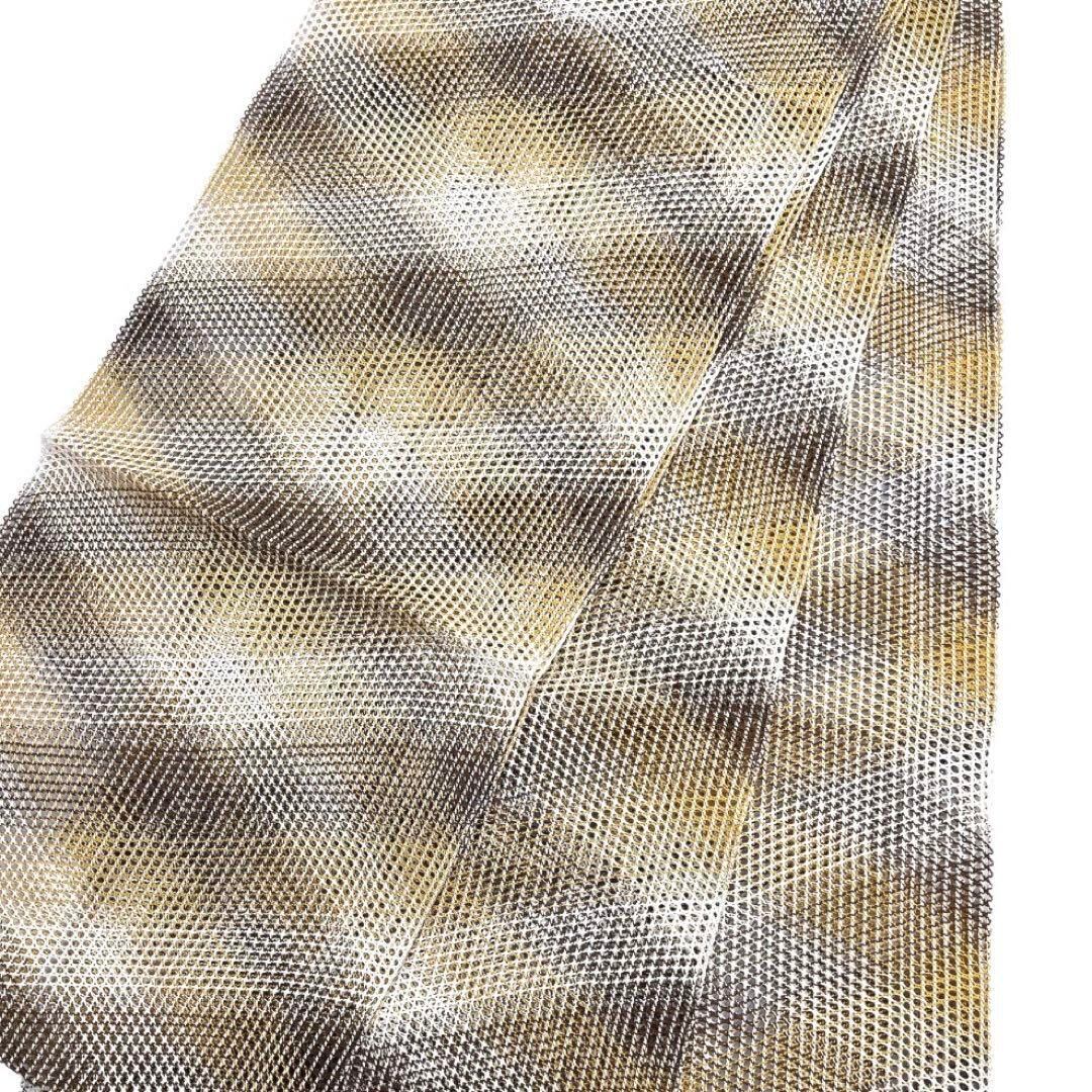 ブラウン、くすみイエロー、ホワイトの羅で菱模様に織られたお洒落なデザインの一着です。