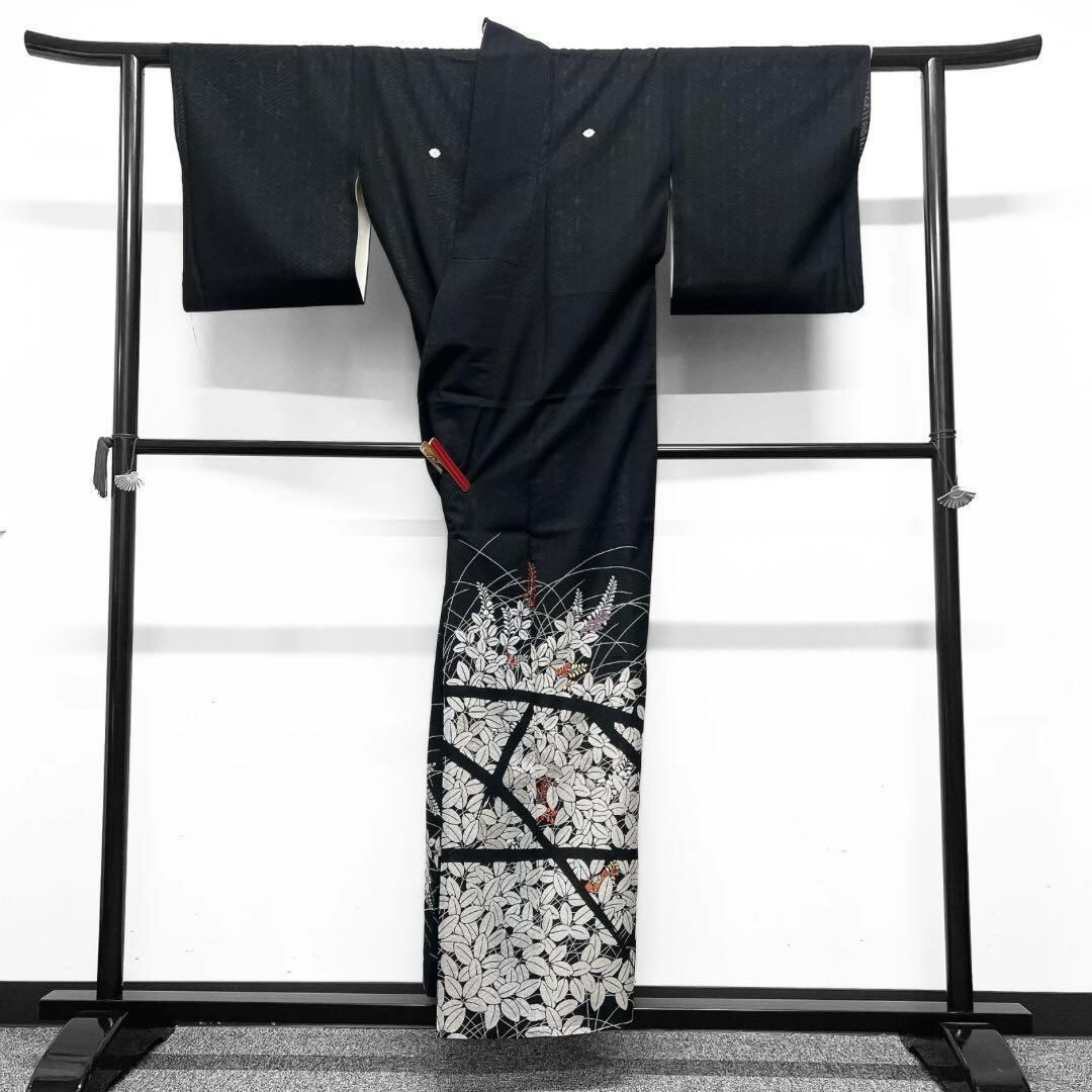 藤模様と萩が描かれた珍しいデザインの1着です。