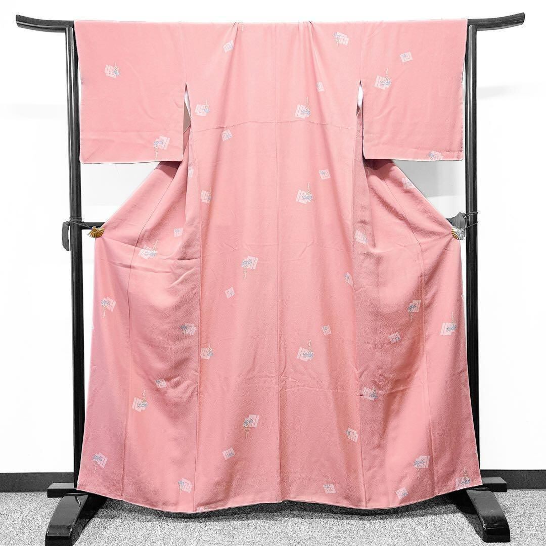 白の源氏香に可愛らしい藤の花の模様が魅力的なデザインの一着です。