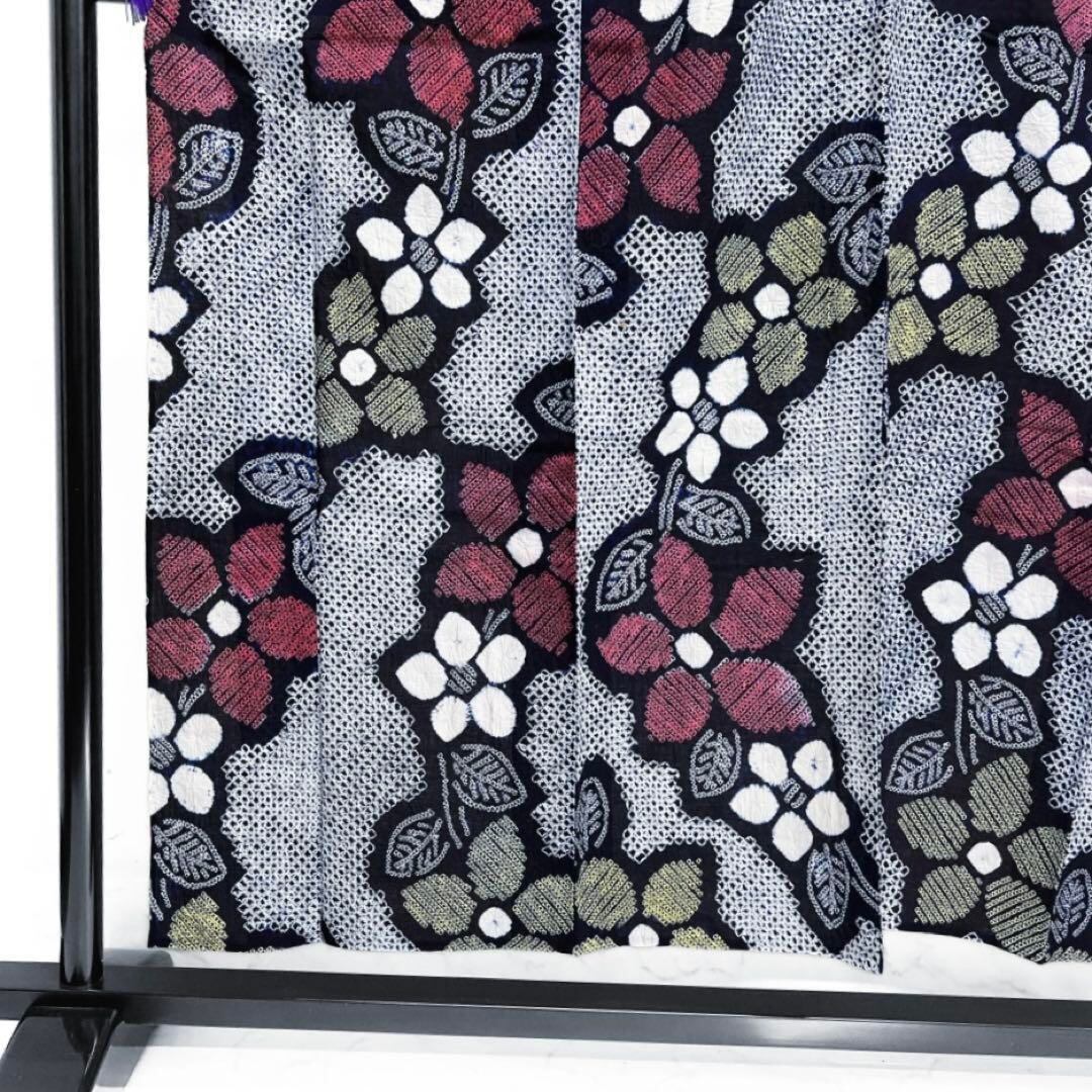 藍染のネイビーの地に絞りで描かれた花模様がお洒落なデザインです。