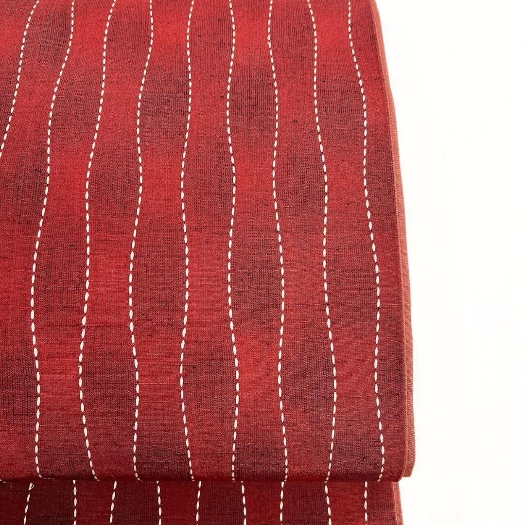 紬地に刺子があしらわれたよろけ縦縞模様の袋帯です。