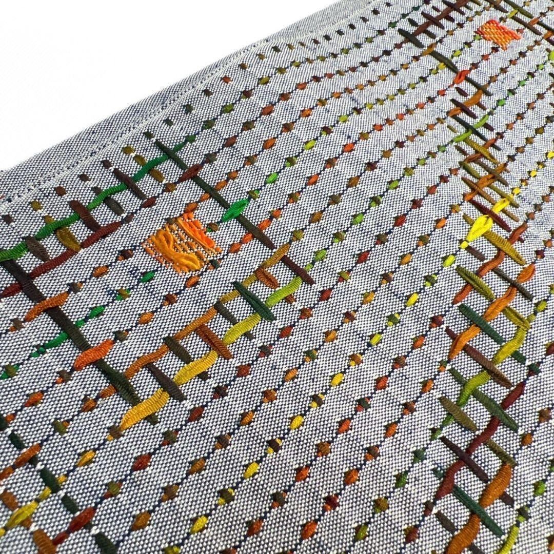 刺子で格子や抽象模様がデザインされた袋帯です。