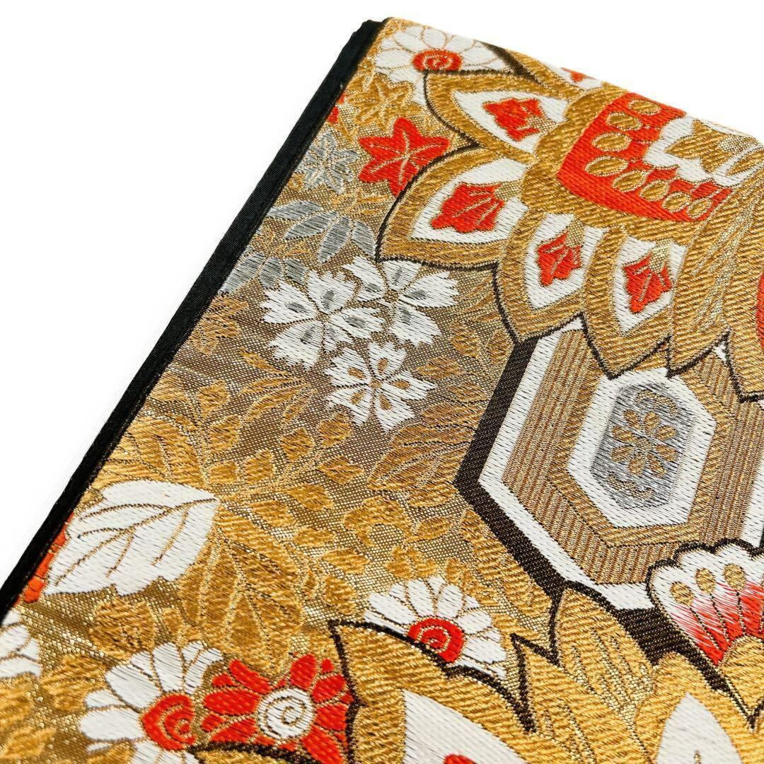 黒地に羽、花六角や唐花模様が織り出された袋帯です。