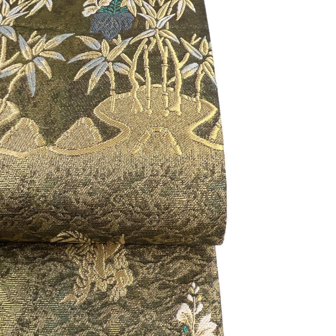 光沢のあるグラデーション地に金糸を交えて竹や桐の花、鳳凰、菱に鳥が織られた華やかなデザインの一着です