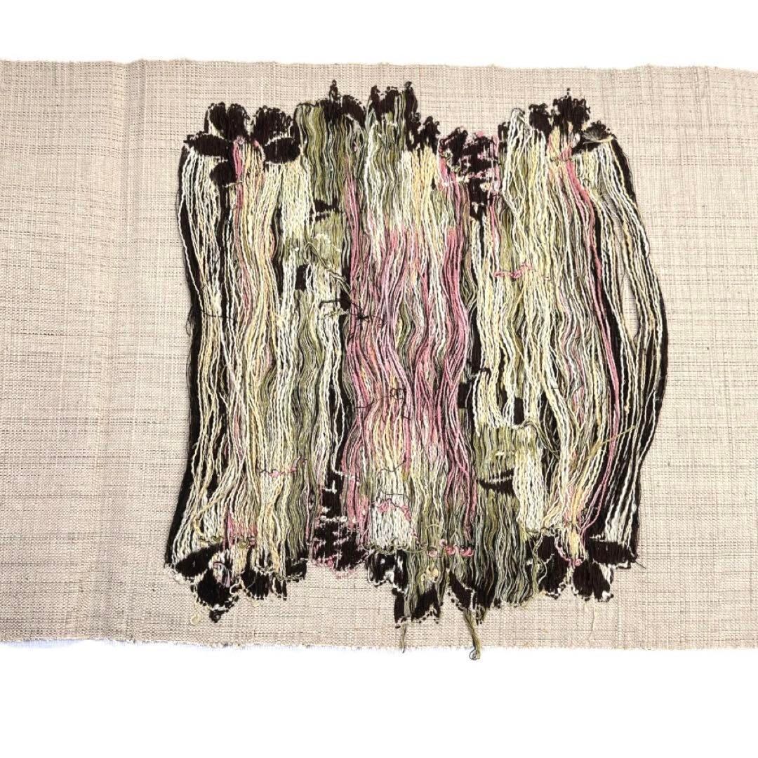 アイボリーに近い薄いベージュの紬の地に織られた唐花の文様がお洒落なデザインの一着です。