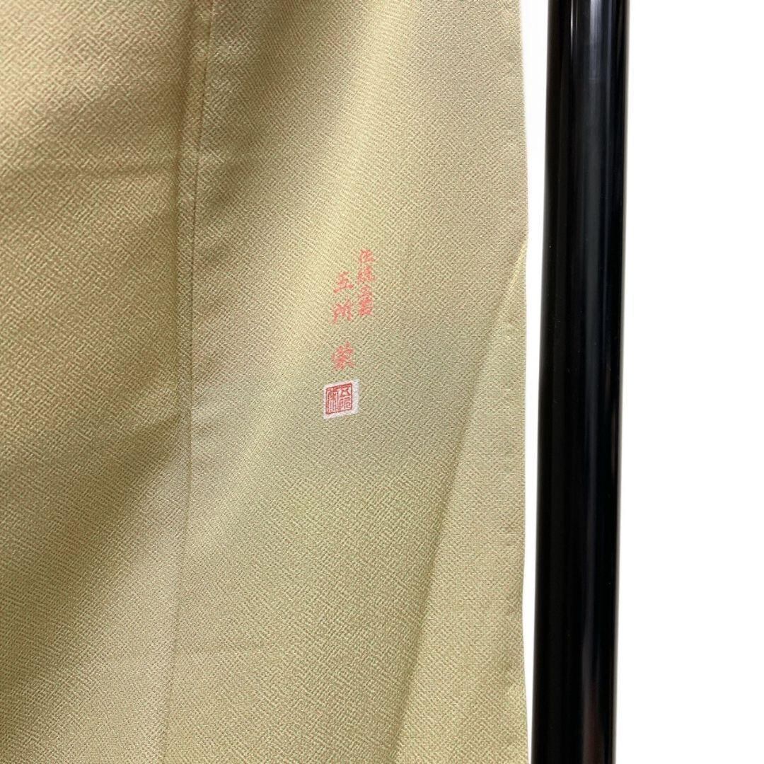 明るめのウグイス色に細かなピンクのドットの珍しいお品です。
