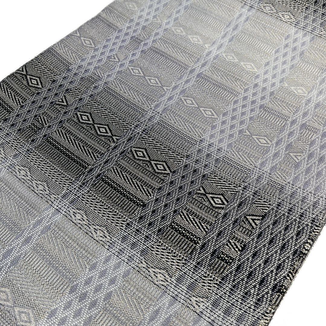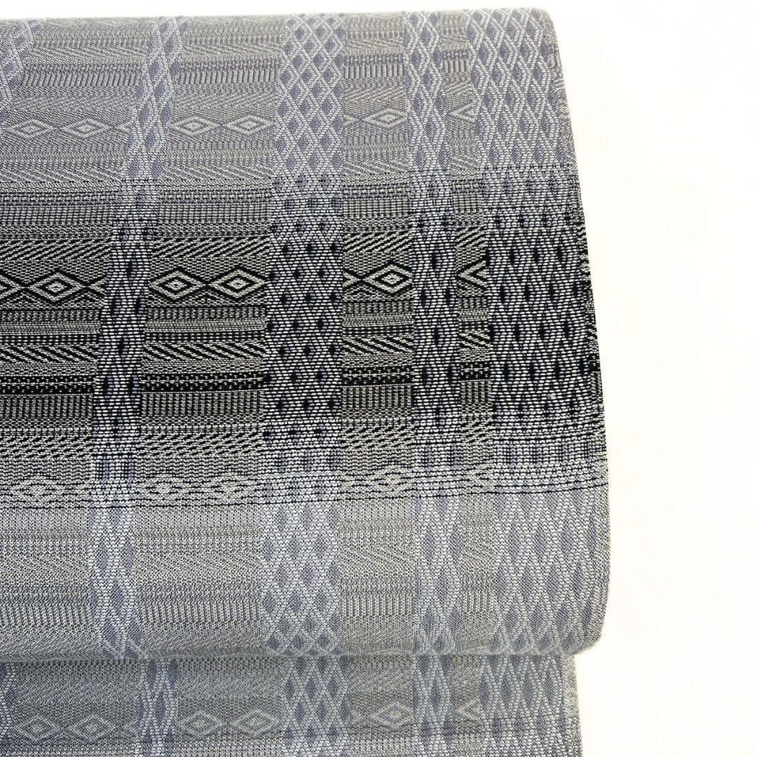 縦縞に菱模様が織り出された未着用の袋帯です。