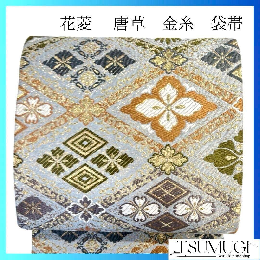 金糸が細やかに織り出された華やかな花菱模様が美しい1着です。