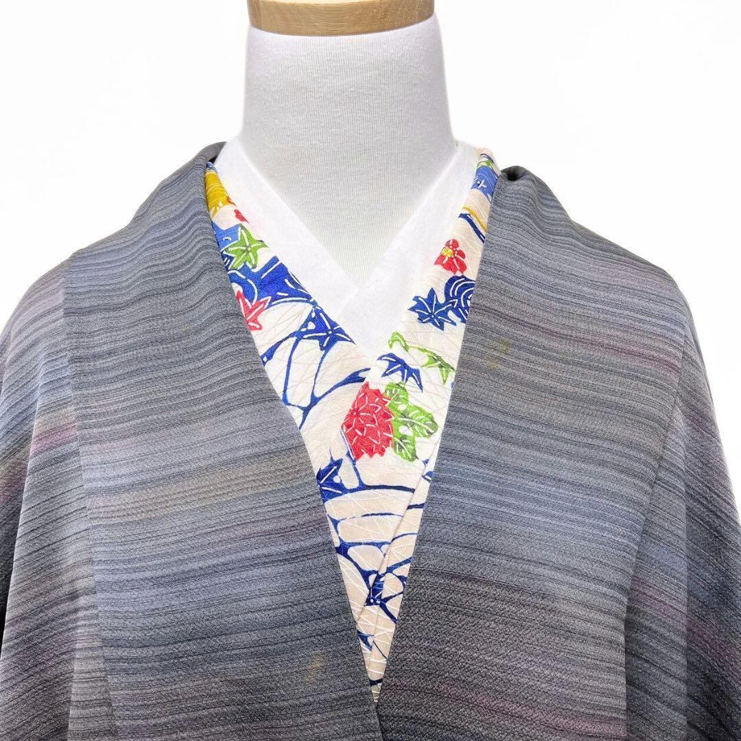 深いグレーを基調にくすみカラーのグラデーションが美しい風合いの1着です。