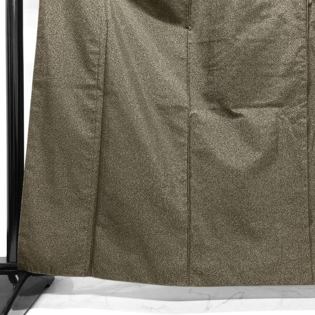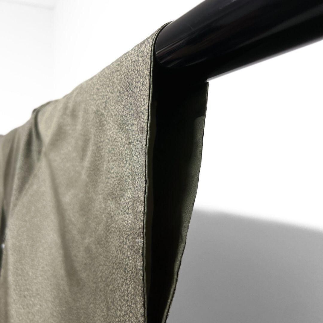 落ち着いたカーキグリーンに織り出された抽象模様が美しい一着です。