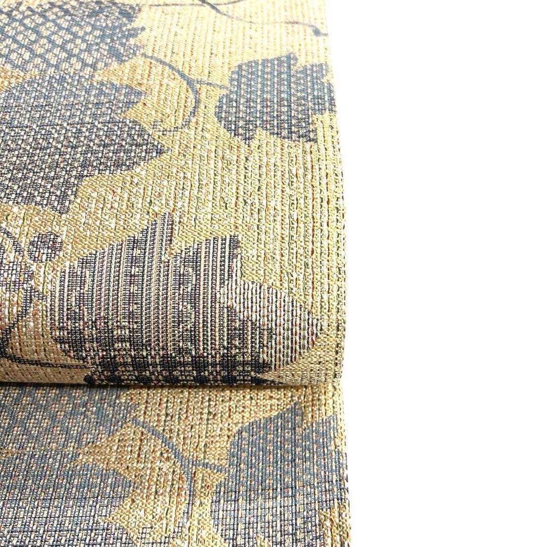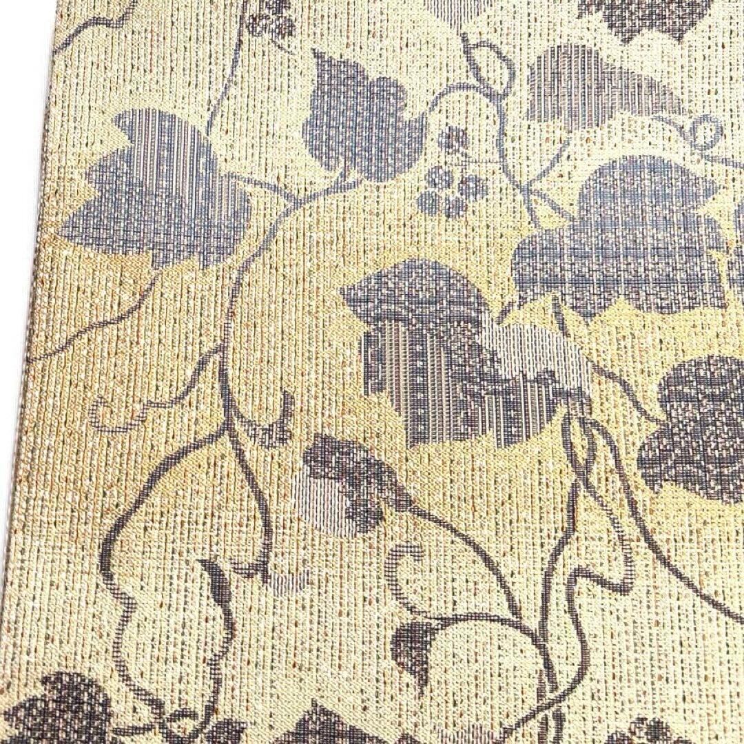 横縞のベージュの地にカラフルな縦縞に伝統和模様で織られた葡萄の文様が華やかなデザインの一着です。