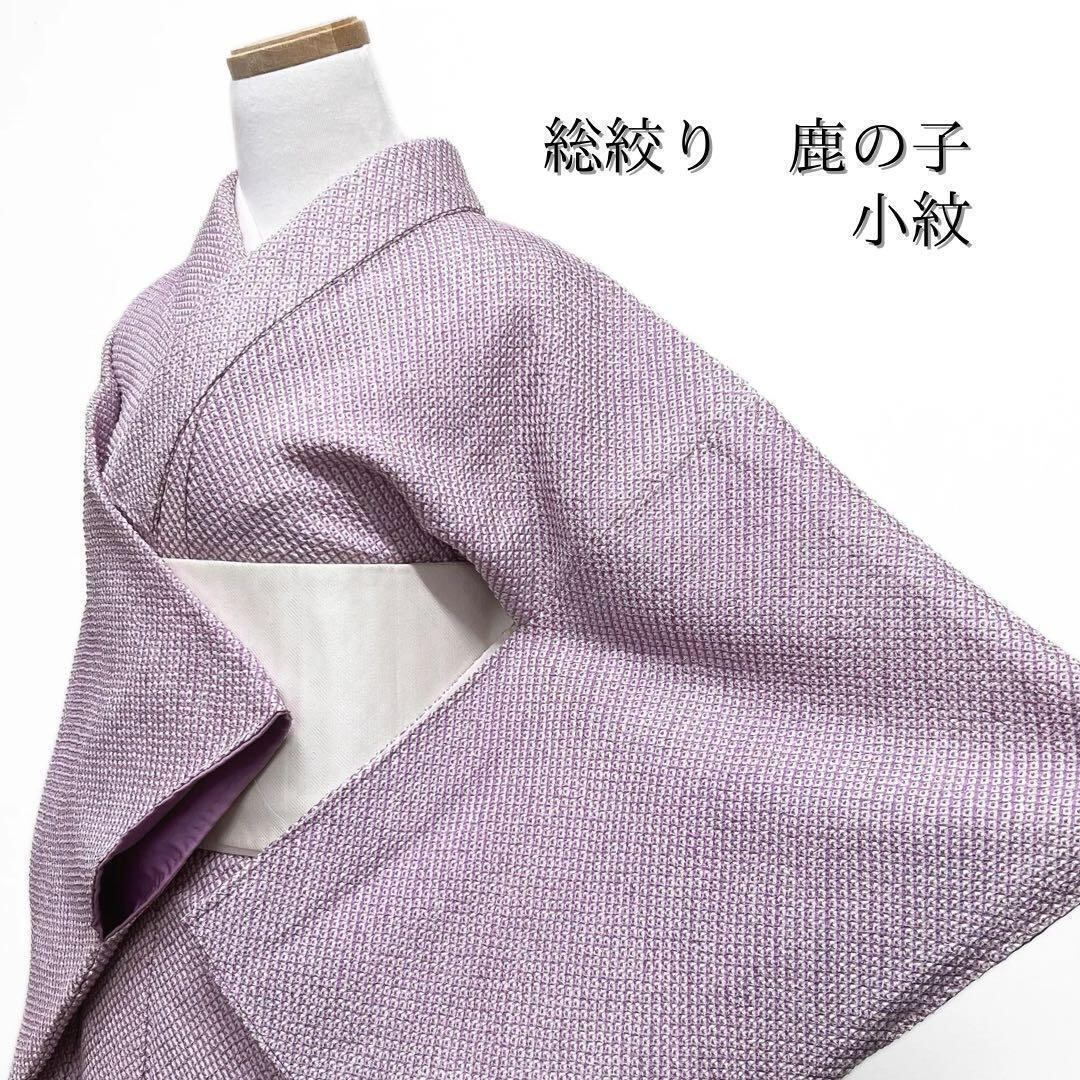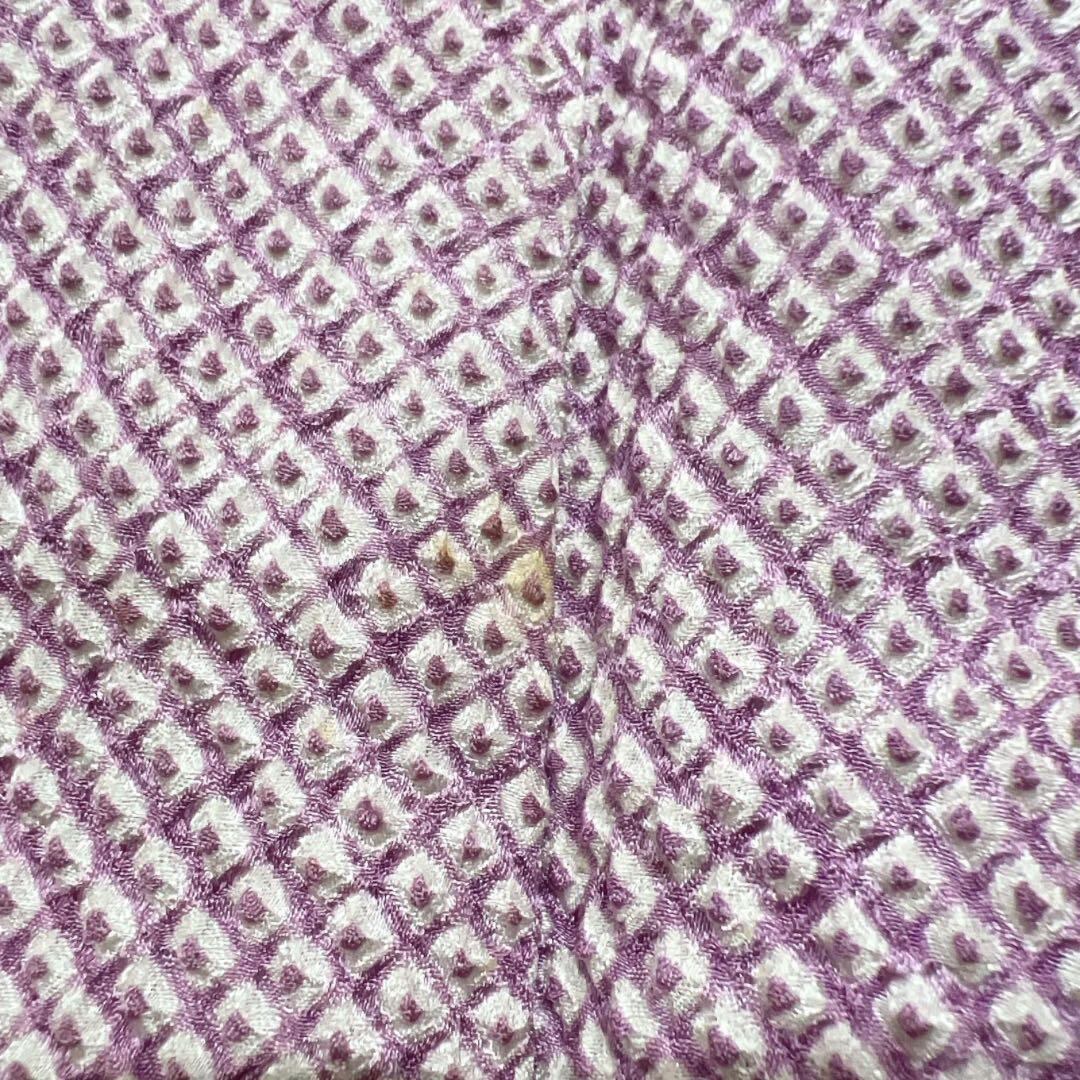 明るい紫色地に白の総絞りがお洒落な一着です。