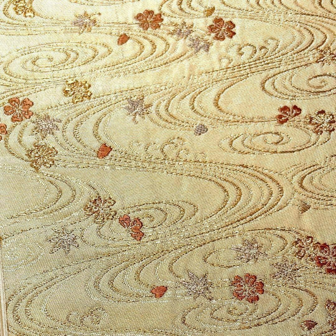 ベージュ地とモスグリーン地に流水と桜と楓に花模様の蜀江紋が華やかな一着です。