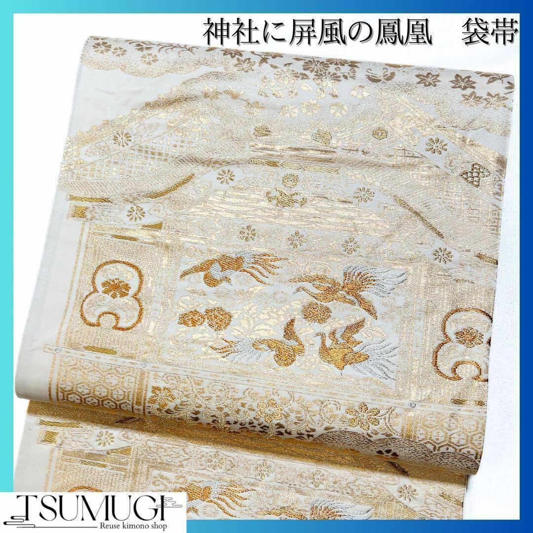 神社に屏風の鳳凰の袋帯です。