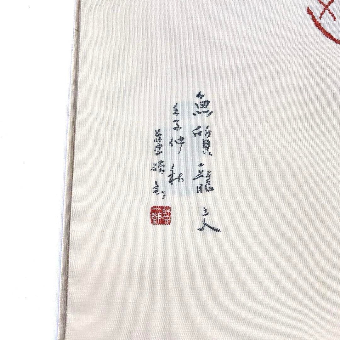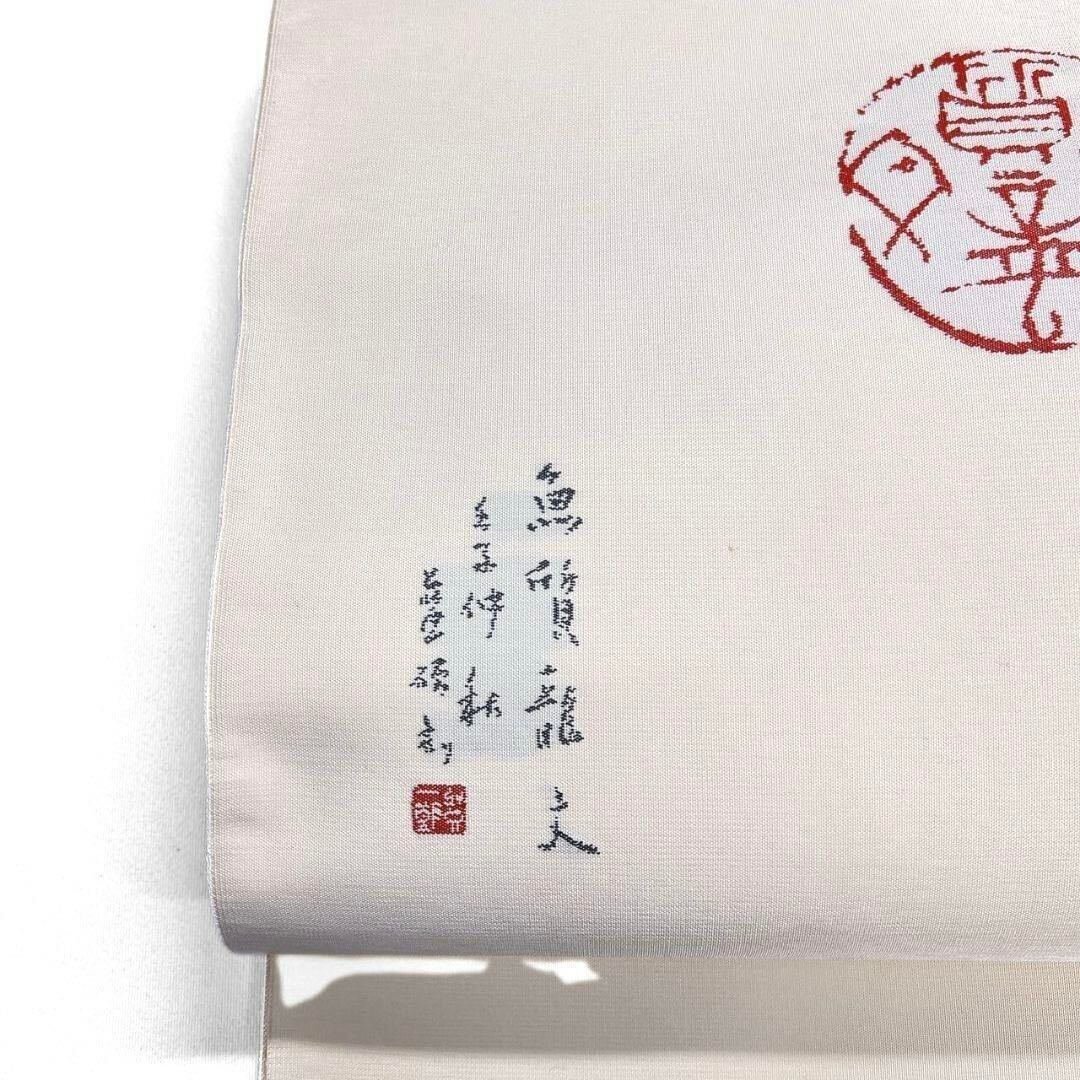 作家ものの魚質龍文が織り出されたアイボリーカラーの袋帯です。