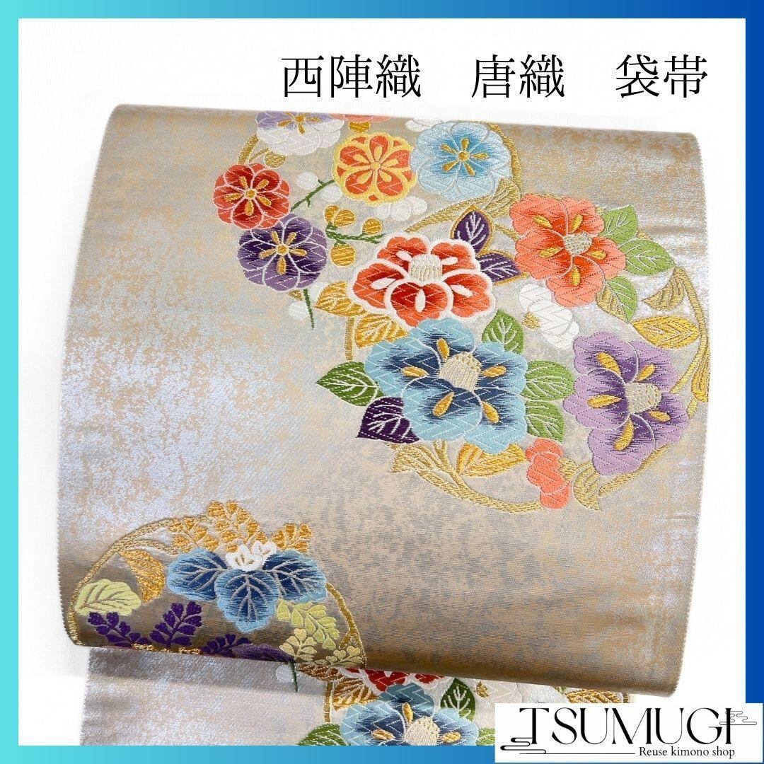 花紋に椿や桐の花が唐織で美しく織り出された一着です。