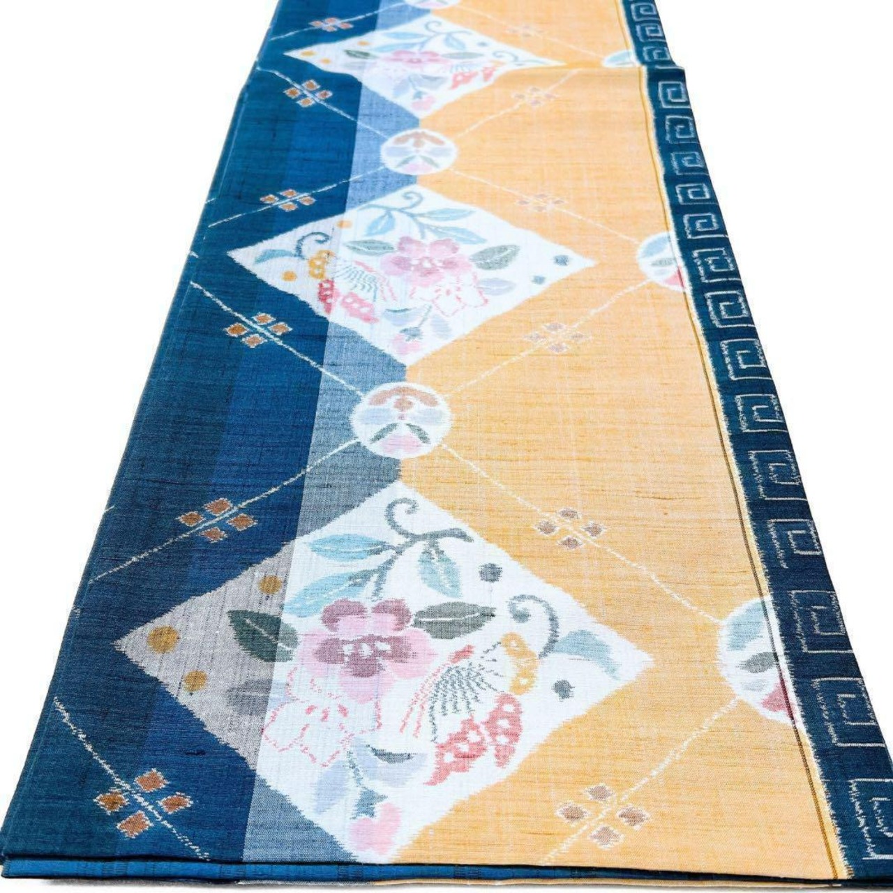 紬地に花と菱模様の袋帯です。