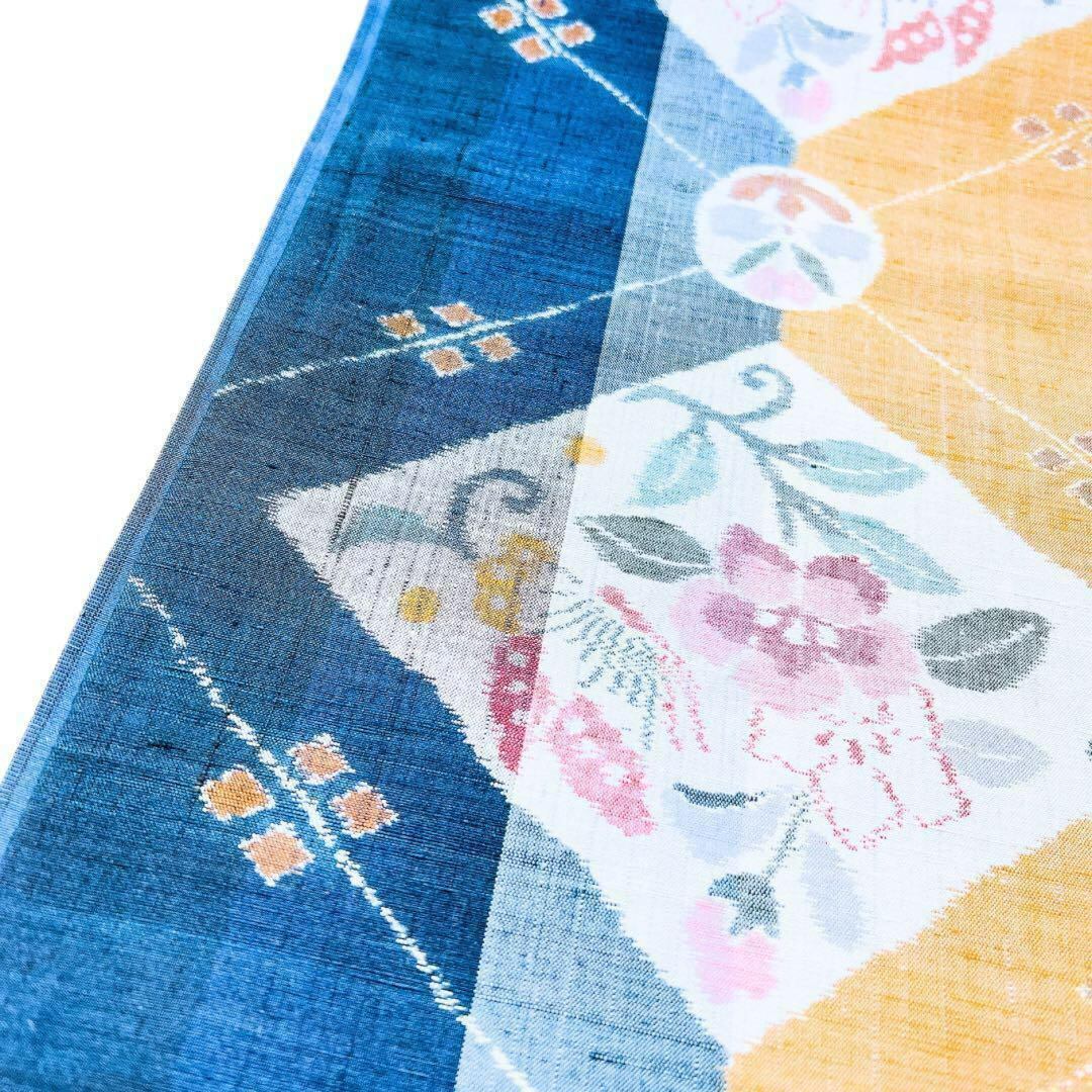 鮮やかな藍と淡い色遣いの花模様が美しいデザインの1着です。