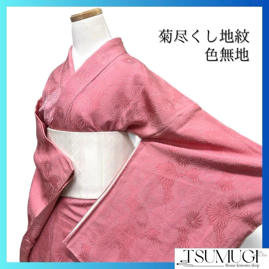 ピンクの地に菊花尽くし地紋が華やかなデザインなお洒落な一着です。