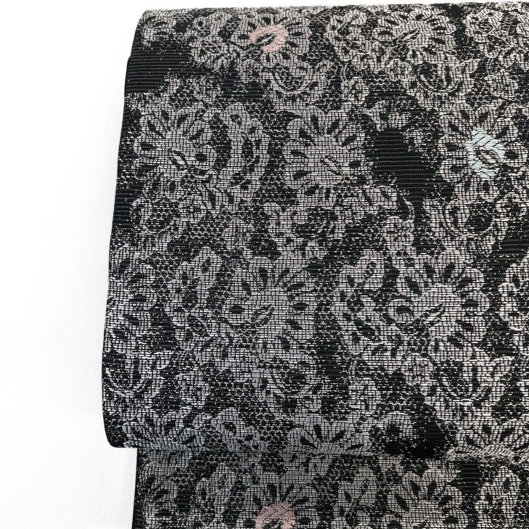 唐織で唐花模様が織り出されたモノトーンの袋帯です。