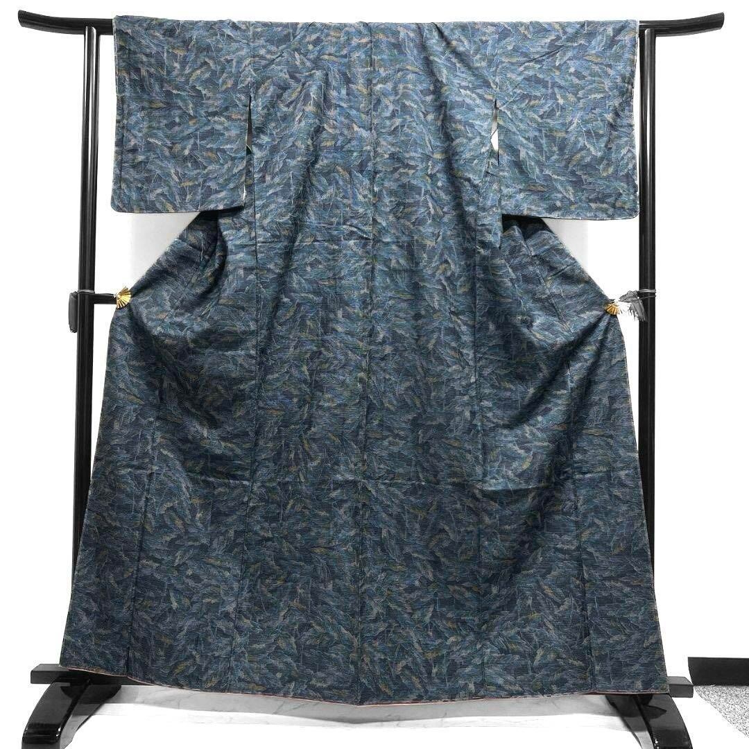 未着用、寒色のお色味が美しいリーフ模様の小紋です。