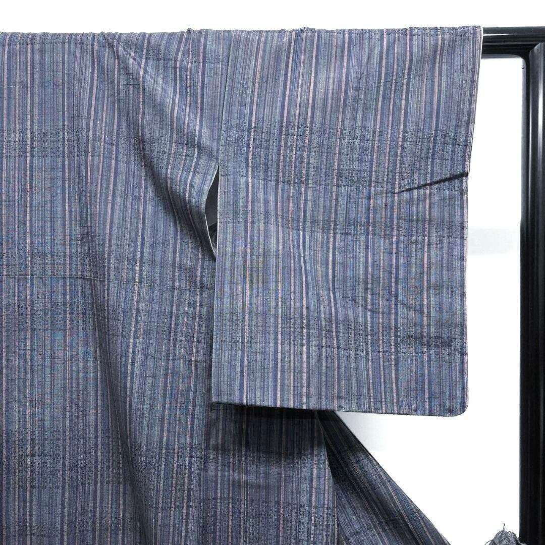 縦縞や横縞が織り出されたくすみブルーの小紋です。