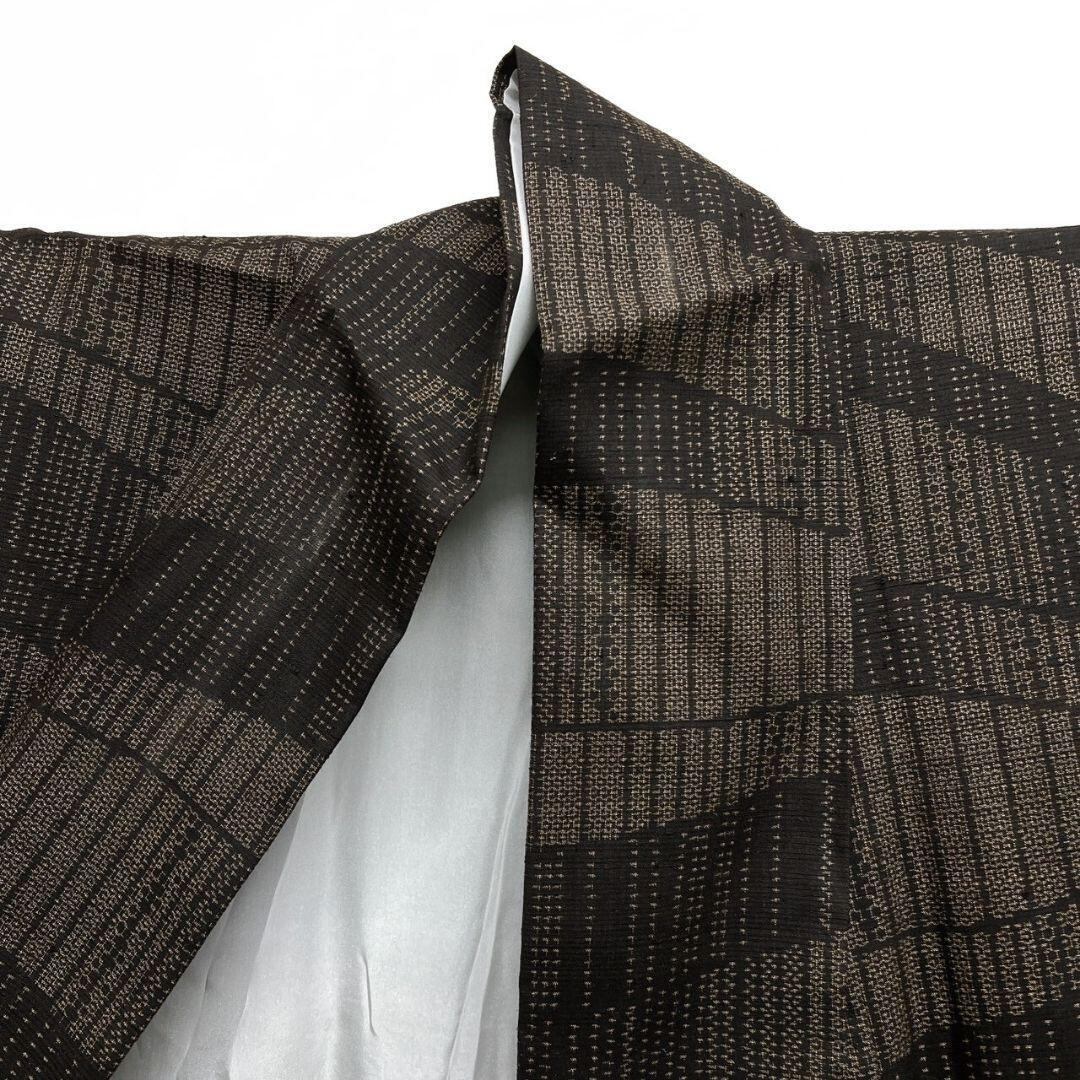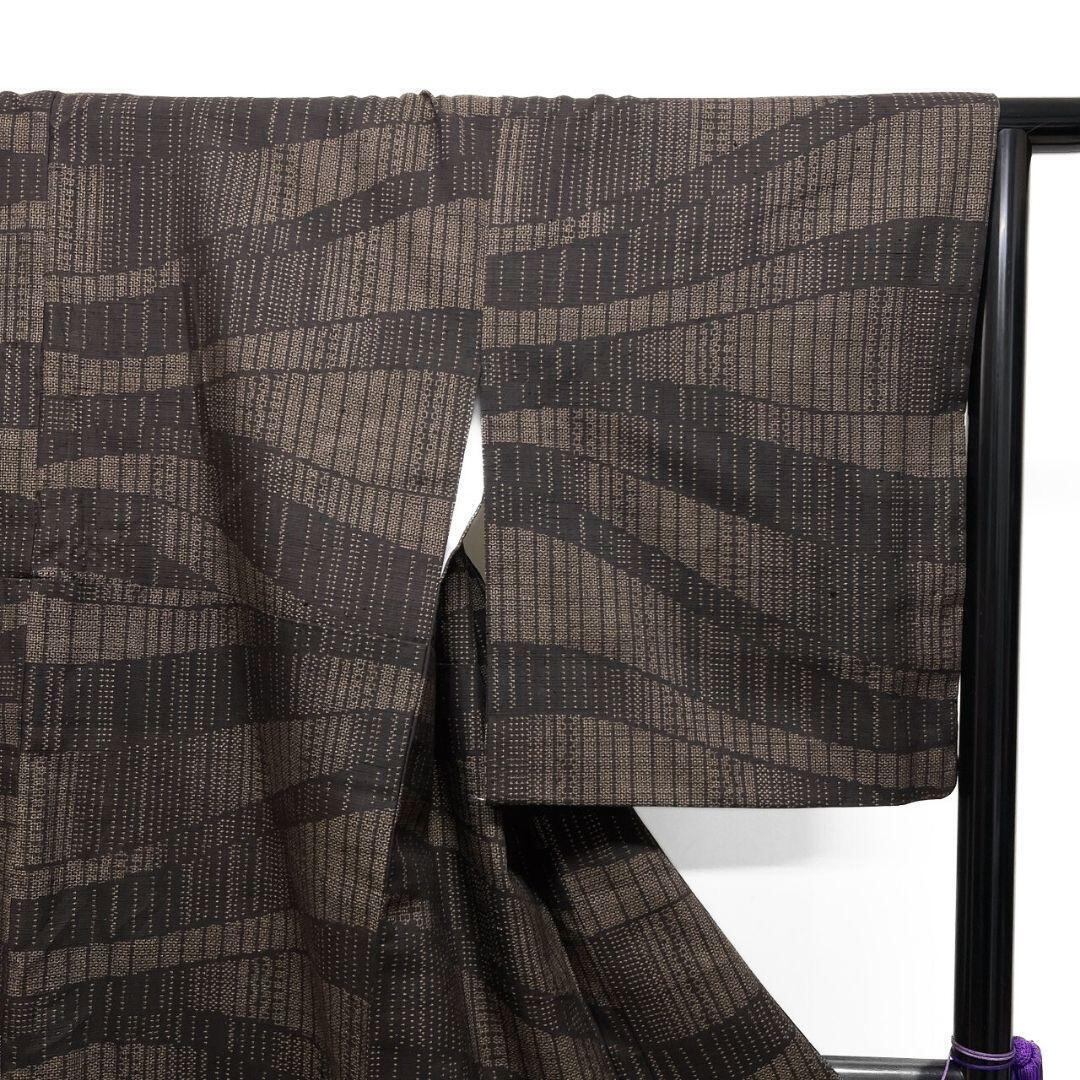 本場結城紬の細やかな亀甲と縞模様が織り出された小紋です。