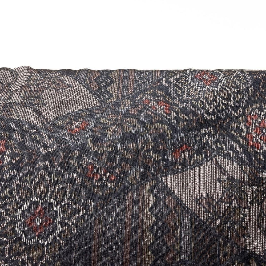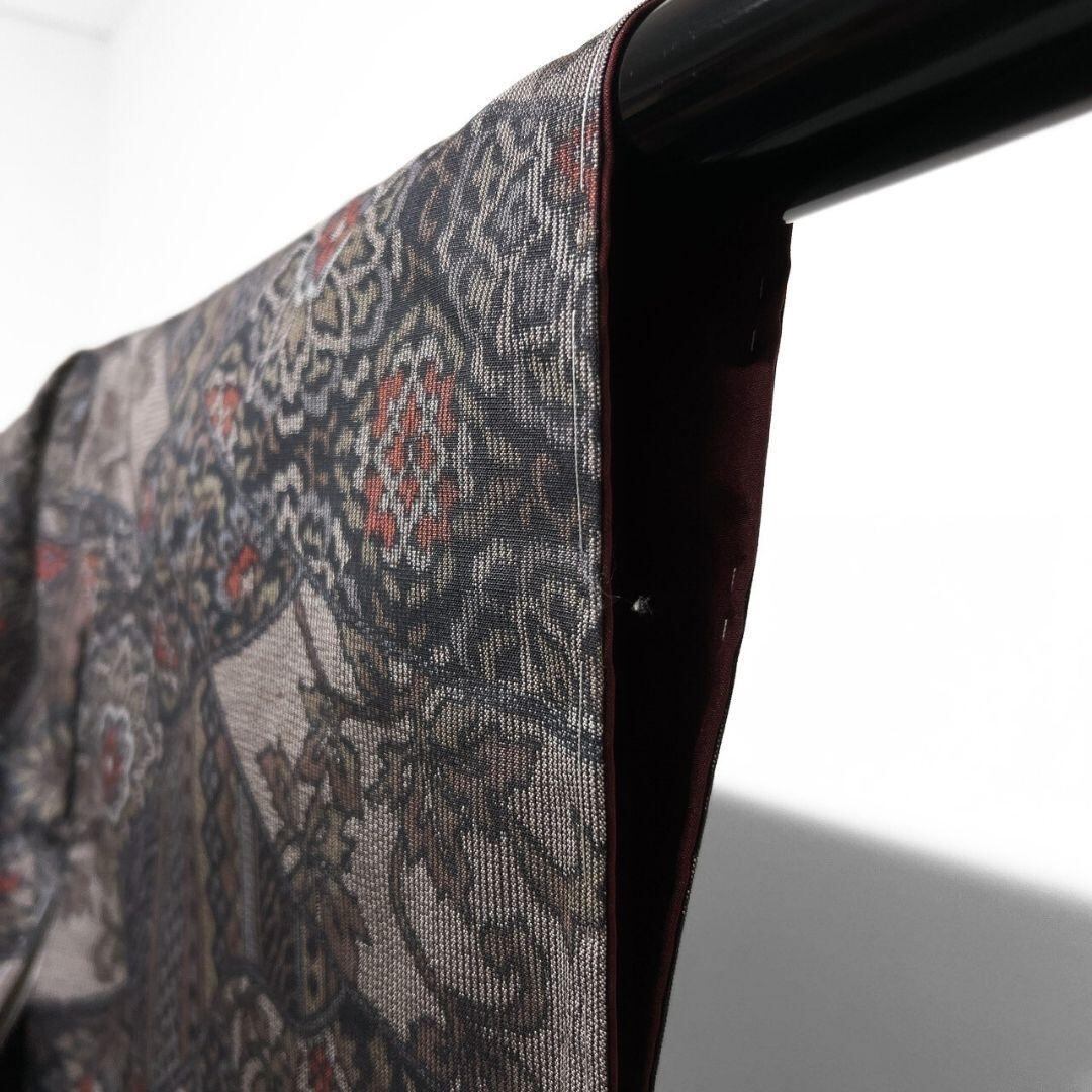 ダークブラウンを基調とした細やかな織りと華やかな文様が個性的な1着です。