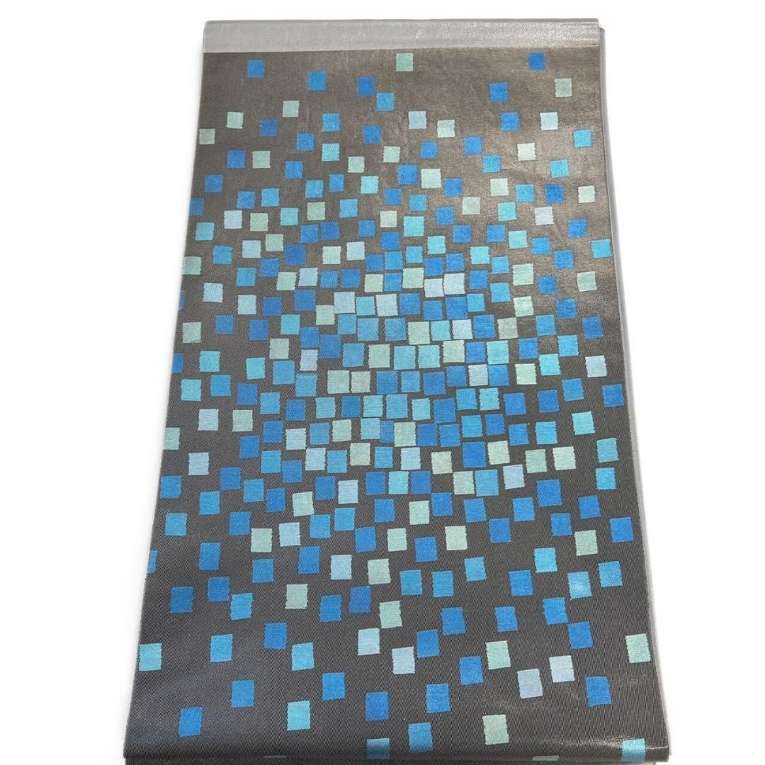 グレー地に寒色を基調としたタイル模様が織り出された袋帯です。