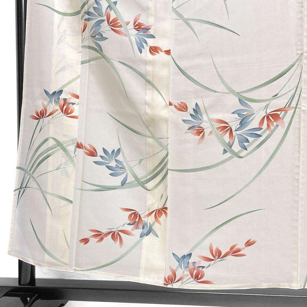 花模様やリーフ模様が繊細なタッチで描かれたクリーム色地が柔らかな雰囲気の1着です。