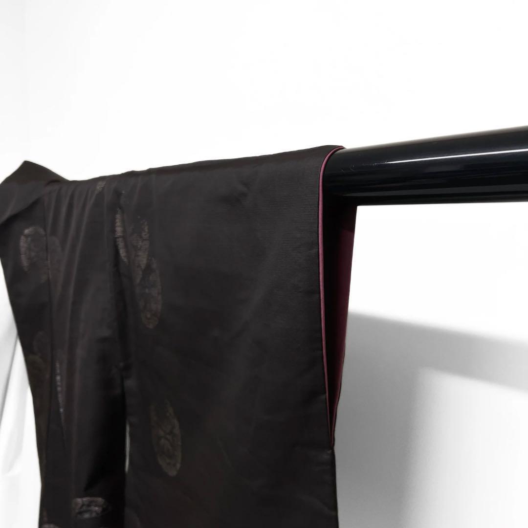 大島紬の黒地に地空きで細やかに織られた車輪文様がお洒落なデザインの一着です。
