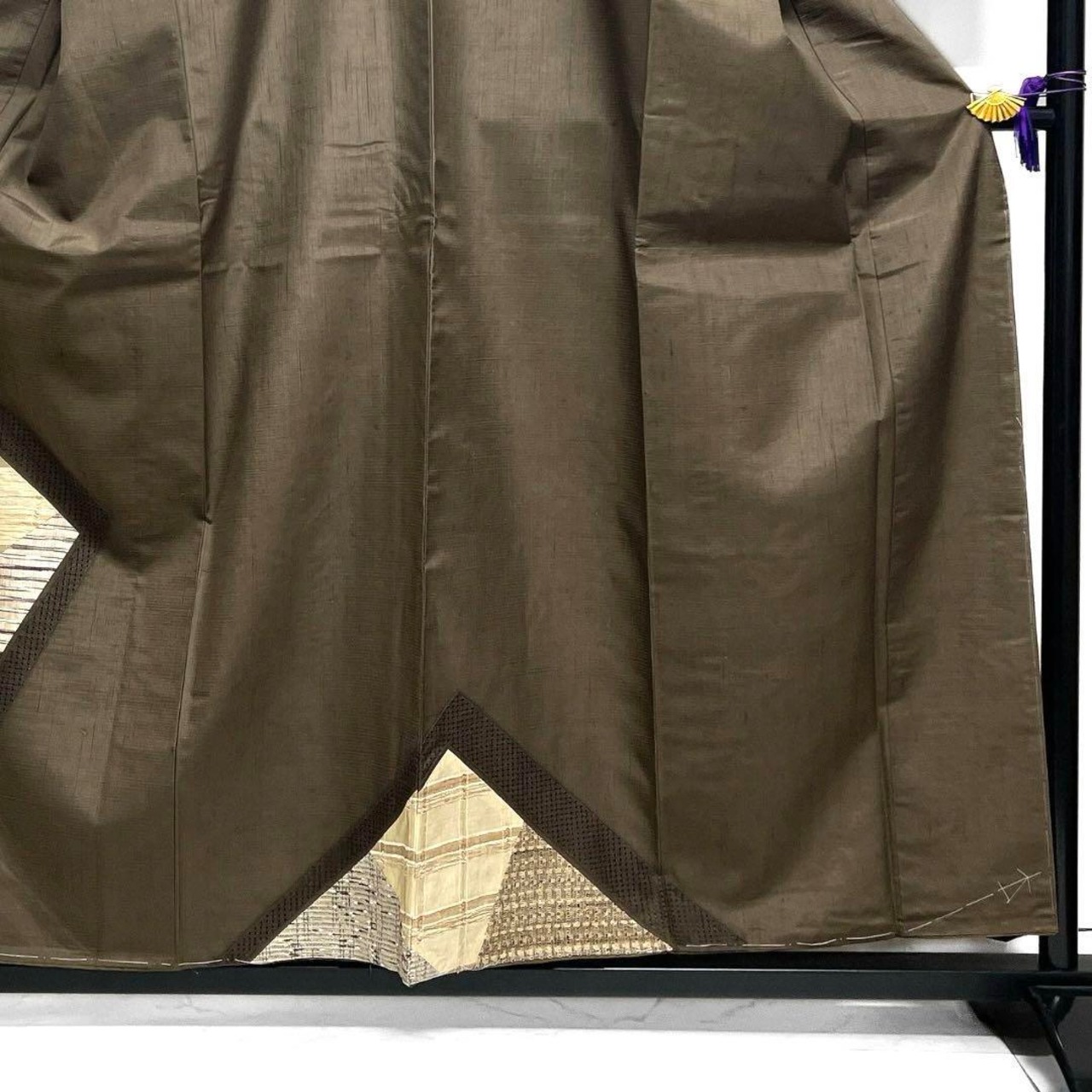 未着用 付け下げ 袋帯セット 紬 切り嵌 スワトウ刺繍 ムガ 着物 054a d