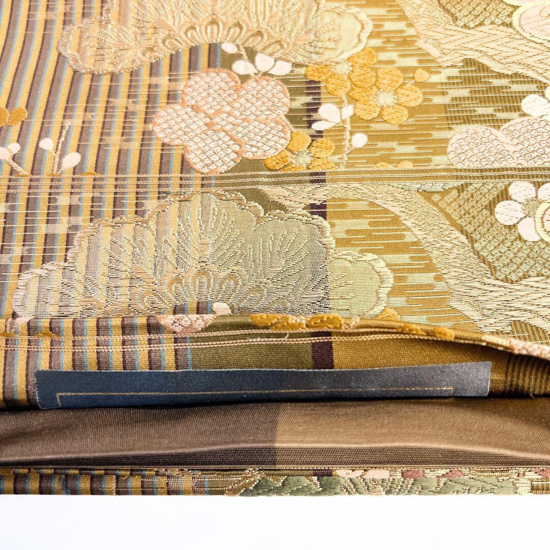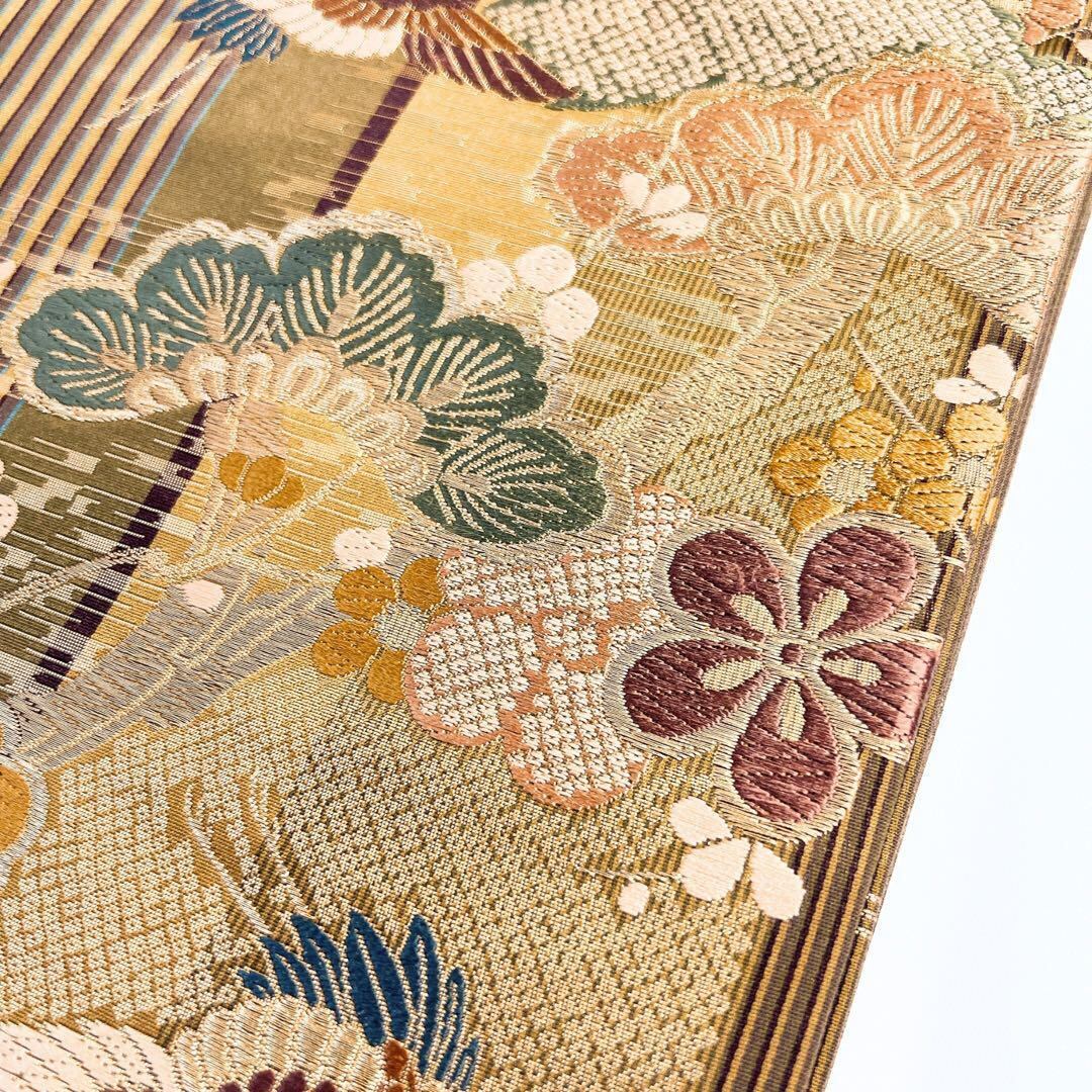 サラサラとした生地に重厚な松、鶴、花が織られた袋帯です。