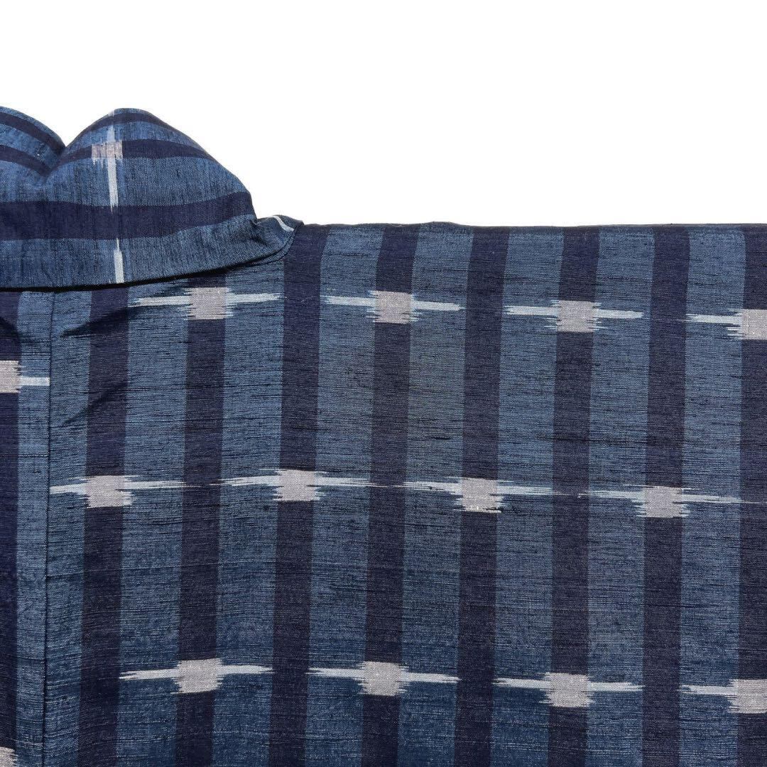 紬地に深い裏色と黒の縦縞に白の抽象模様が織られたお洒落なデザインの一着です。