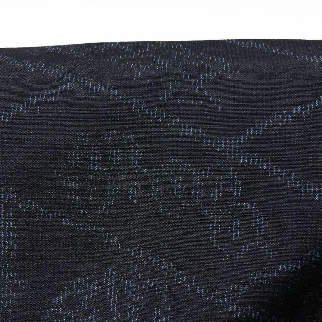 柔らかな結城紬の地に織られた檜垣の文様と亀甲と竹の文様がお洒落な雰囲気の一着です。