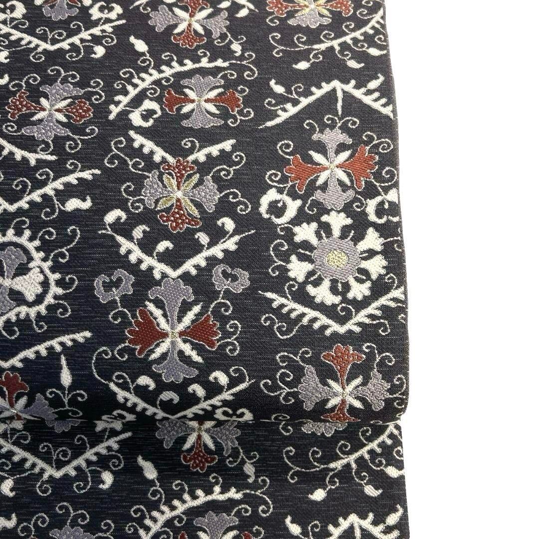 花菱にリーフ模様が金糸を交え織り出された袋帯です。