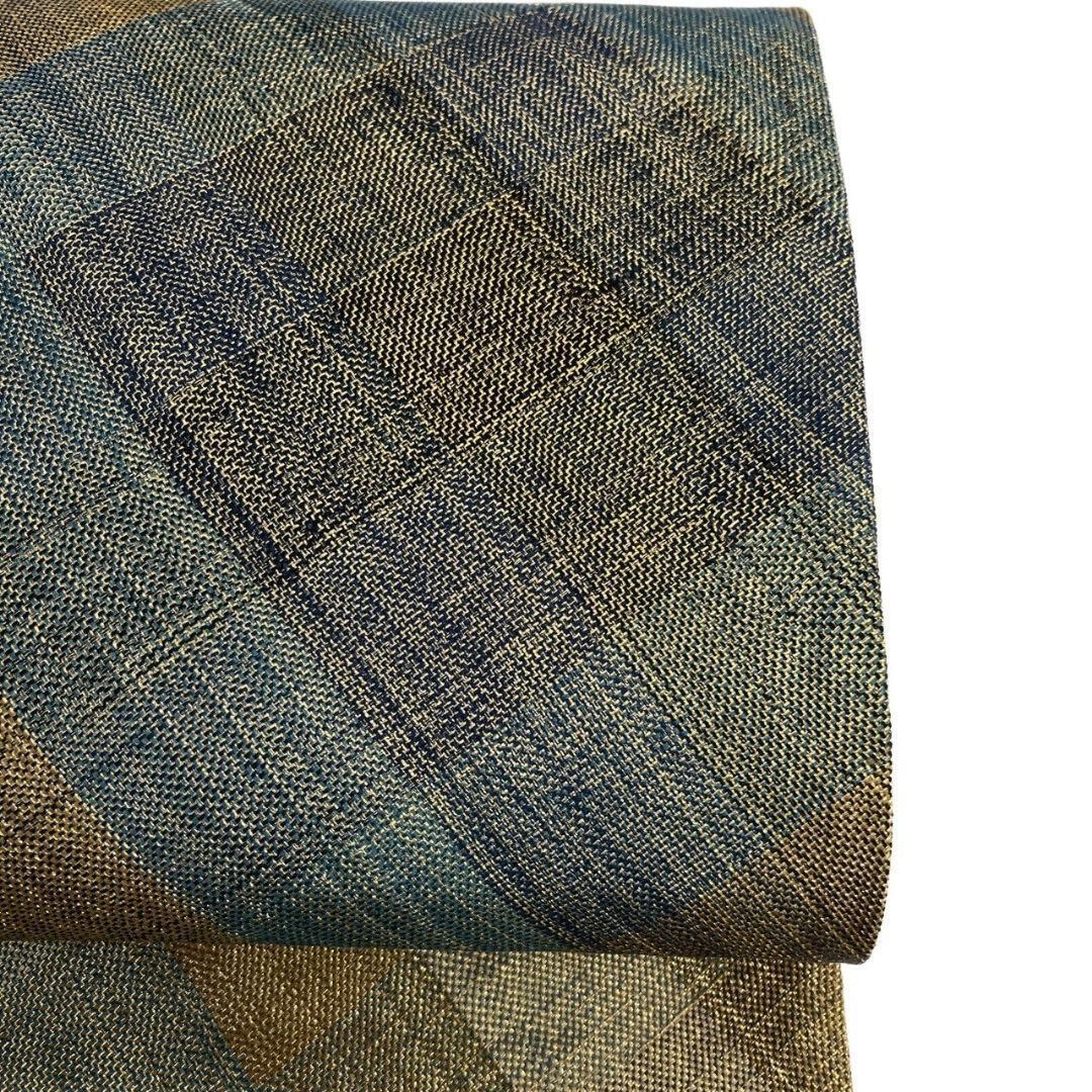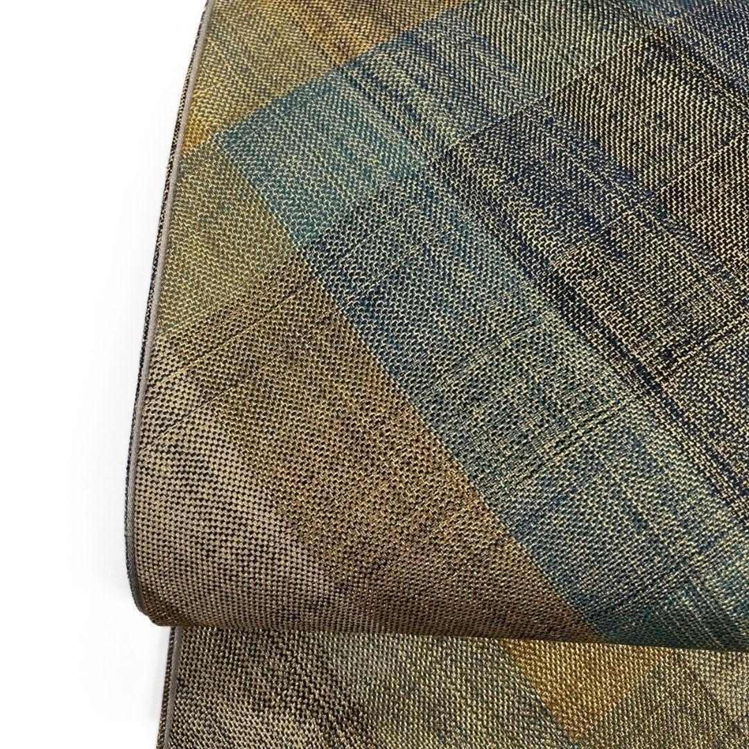 金通しに格子模様が全体にに織り出された袋帯です。