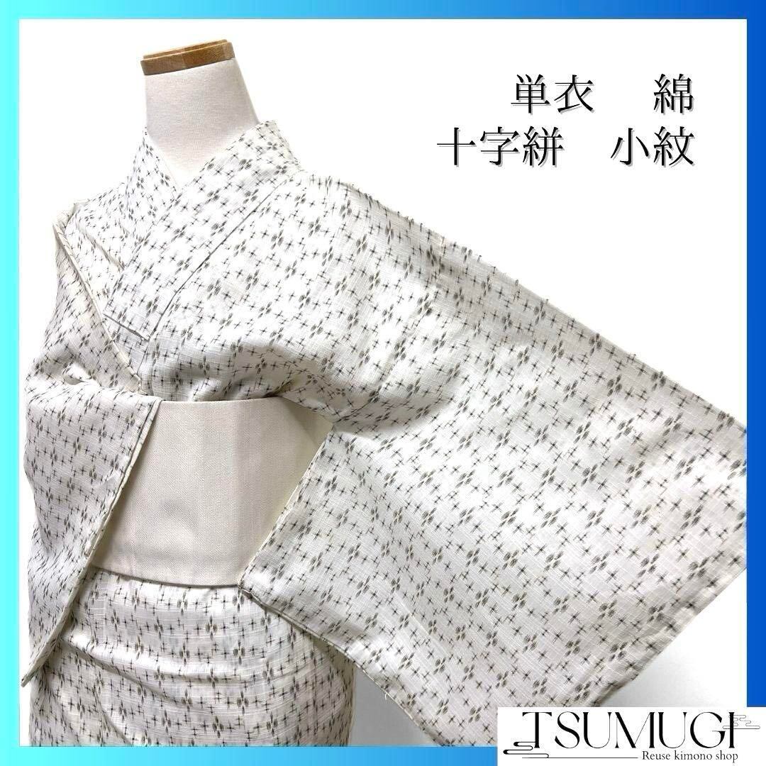 爽やかで軽やかな白地に十字絣が細やかにデザインされた、柔らかな生地の一着です。