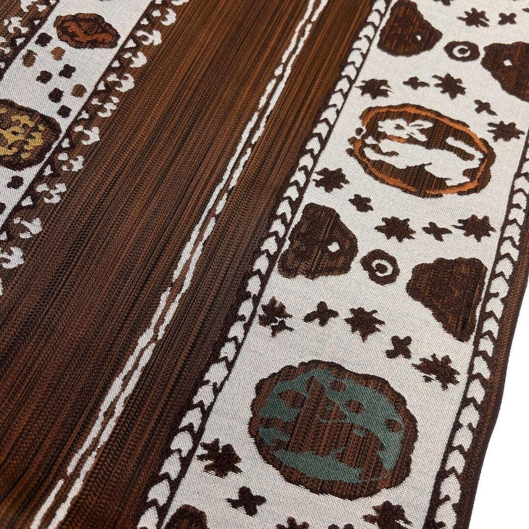 鹿や兎、花模様が可愛らしいデザインで織られた一着です。