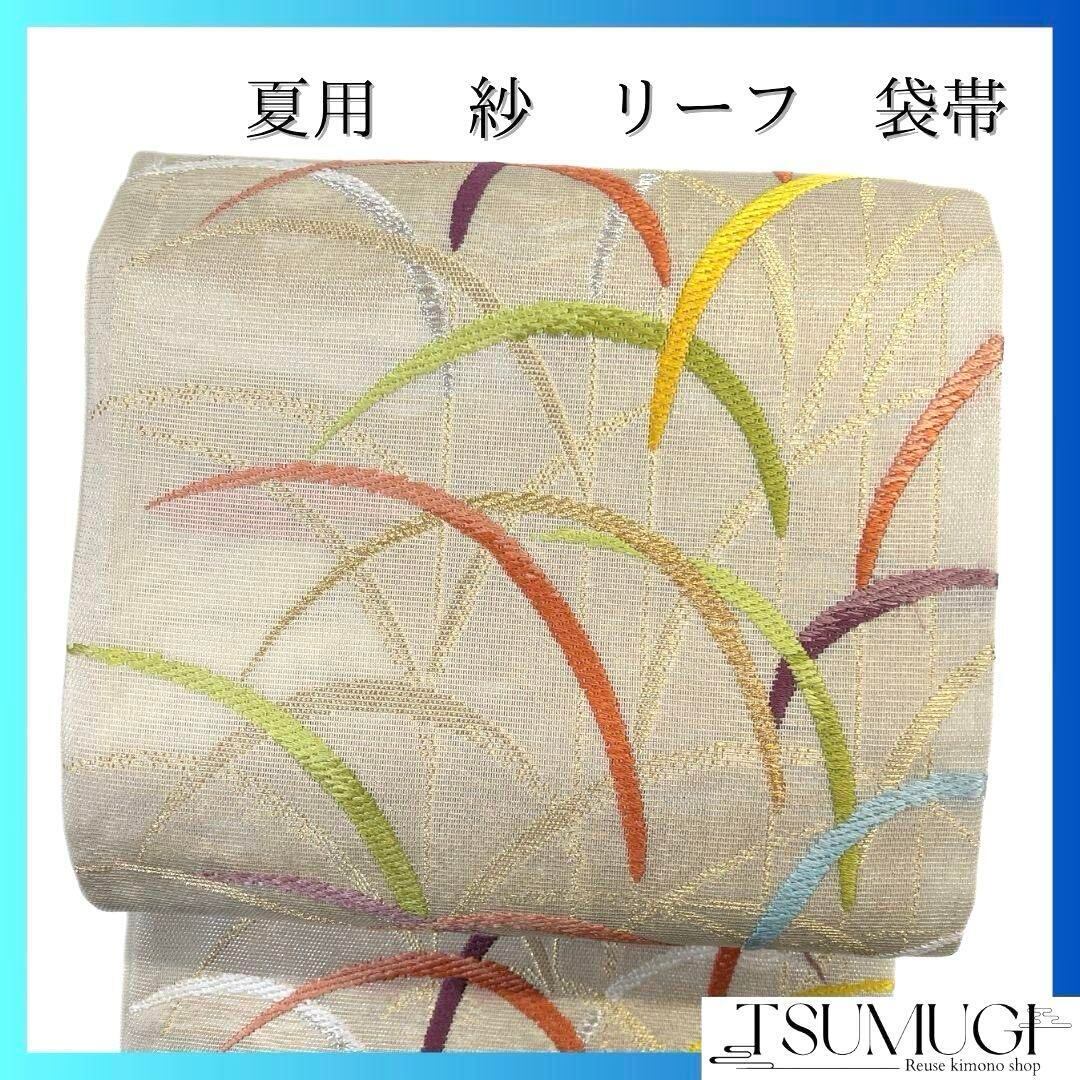 夏用、紗のリーフ模様が織り出された袋帯です。